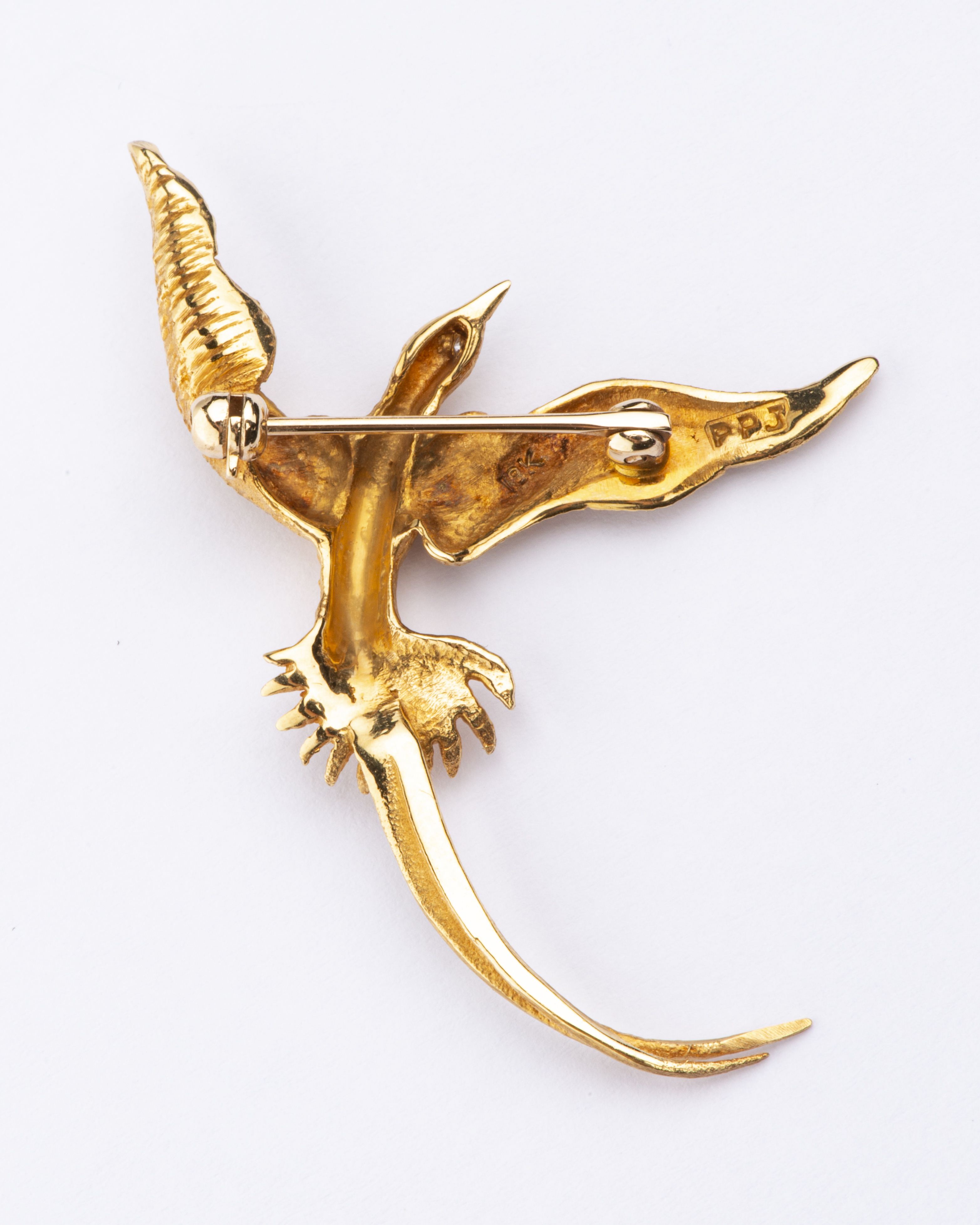 Broche-oiseau de Paradis en or jaune