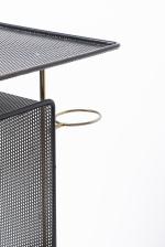 Mathieu MATEGOT (Attribué à), petit meuble d'appoint en tôle perforée et métal tubulaire laqué noir.