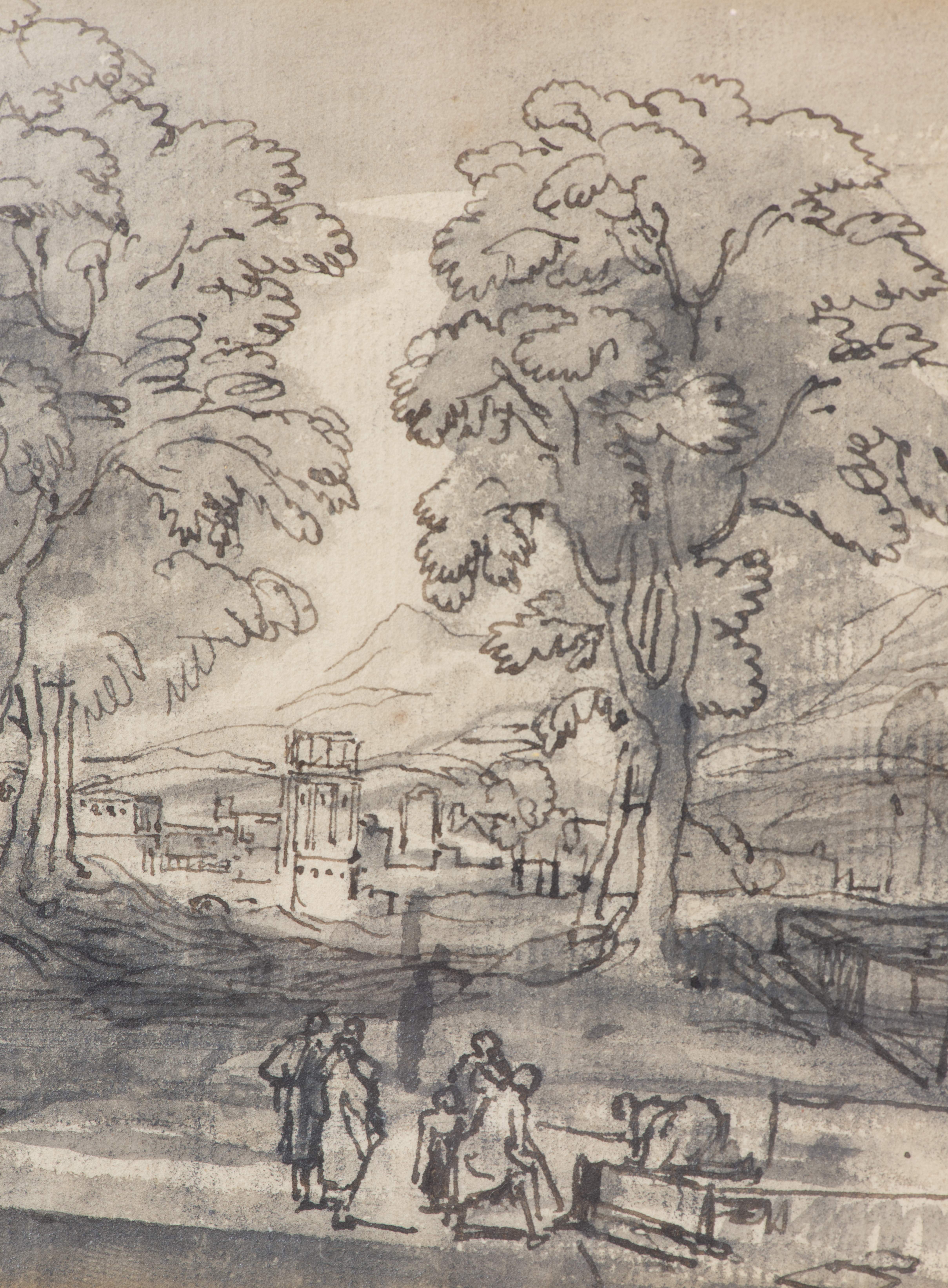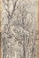 Ecole Hollandaise XVIIème, Ensemble de trois dessins à l'encre et sépia. Porte au dos une étiquette "Galleries Charles E. Slatkin. New York"