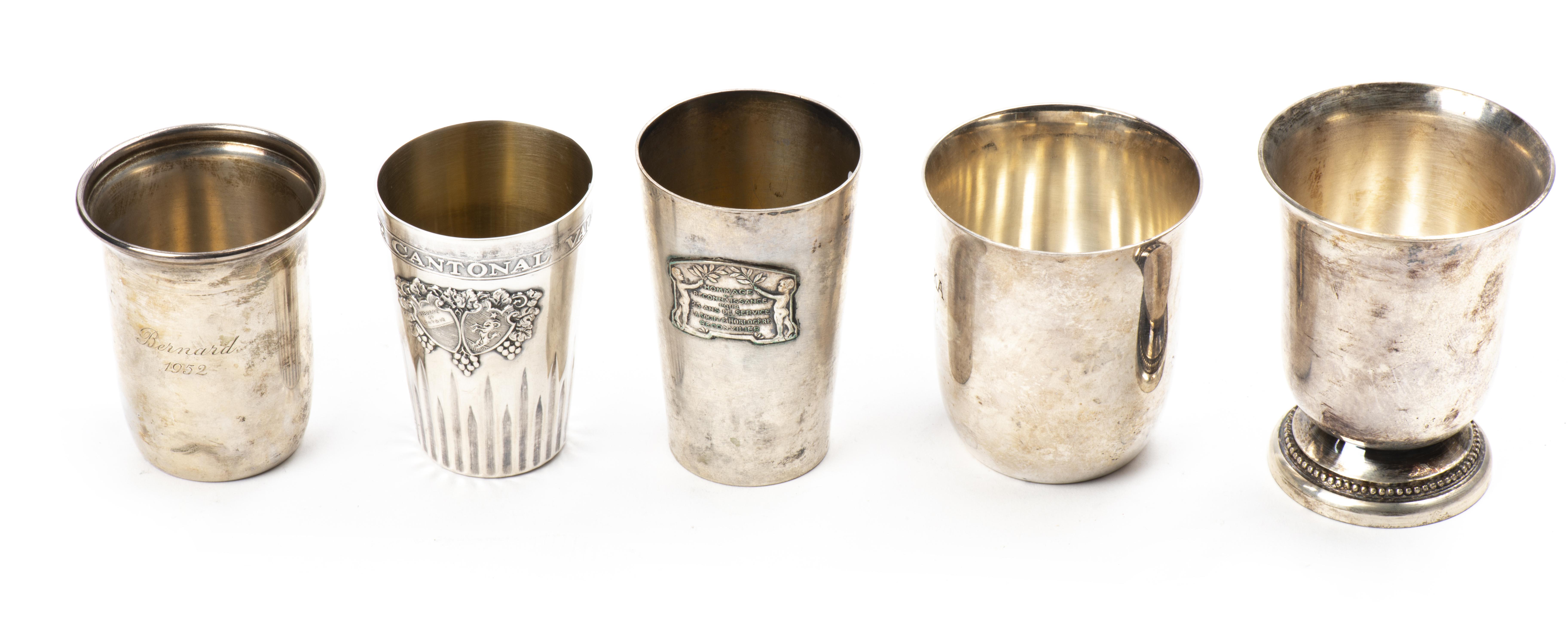 Collection de 10 timbales en argent .800 de diverses formes et tailles