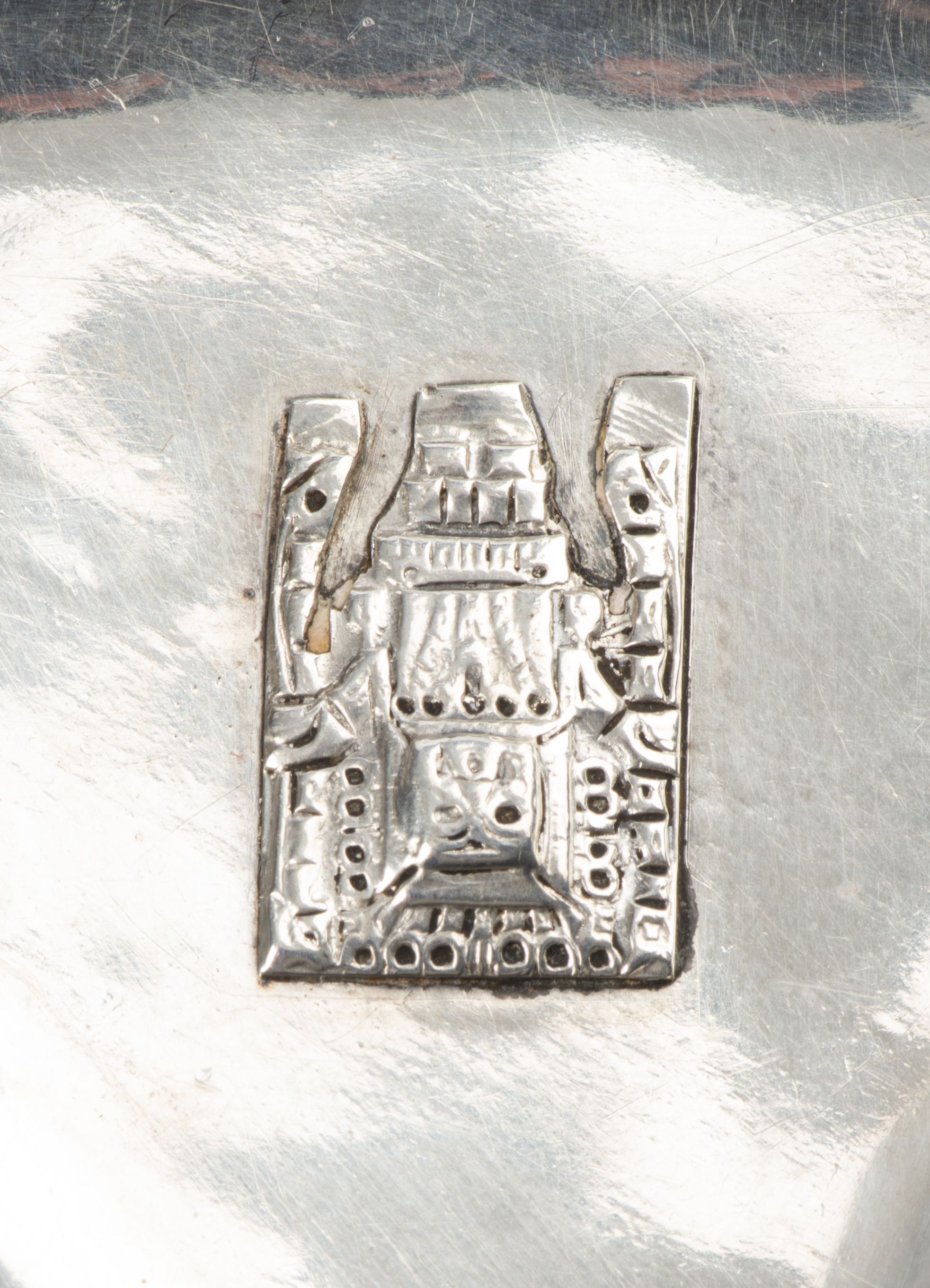 - un petit cendrier en argent mexicain .925 à motif précolombien, Diam. 7 cm, poids 20 g