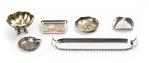 On y joint deux cendriers en verre et argent sterling et une coupelle en métal argenté représentant une scène galante, signée B. Wickergr