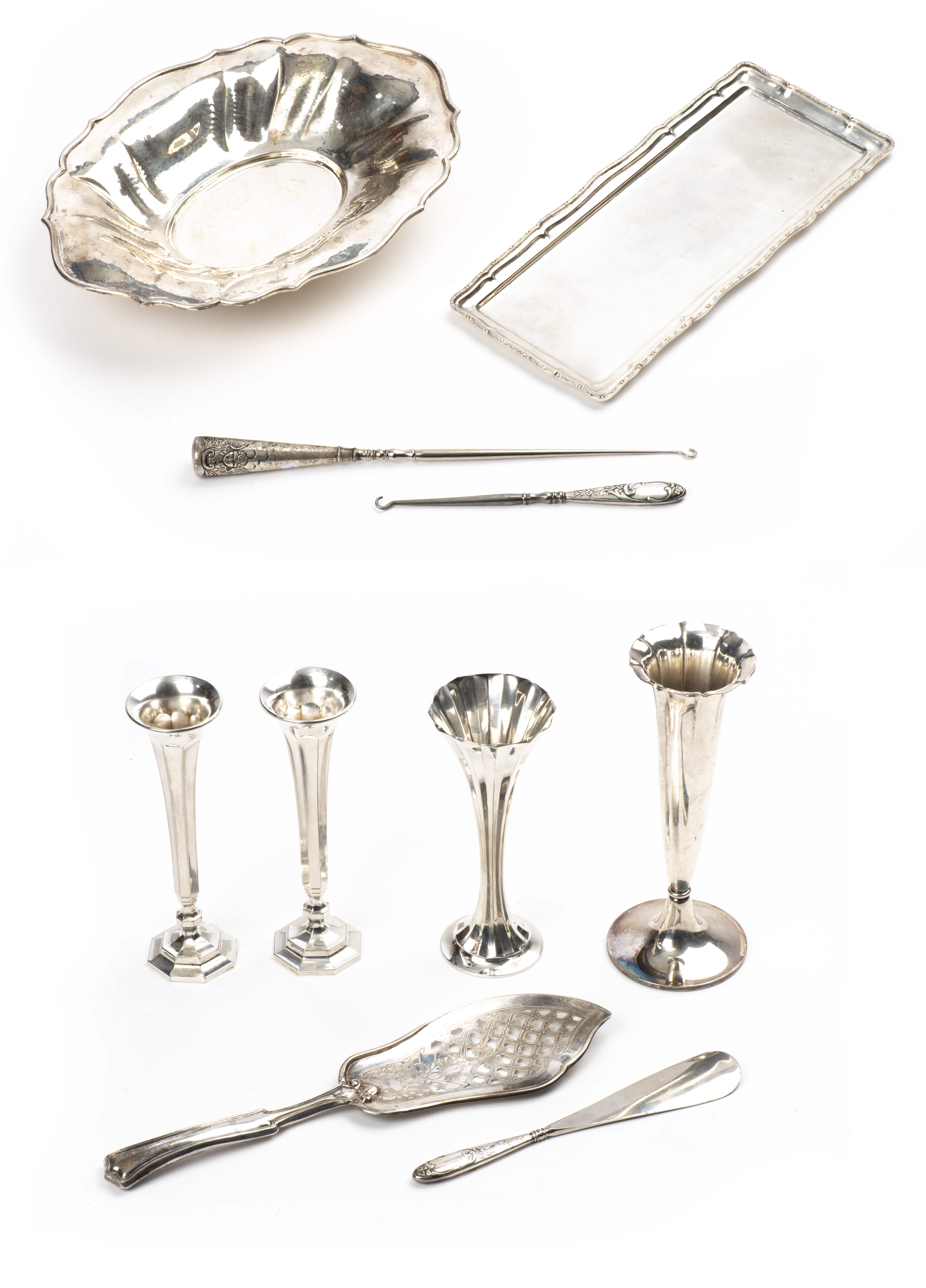 - JEZLER, vase soliflore en argent .800, H. 21.5 cm, Poids 188 g (avec le contre-poids)