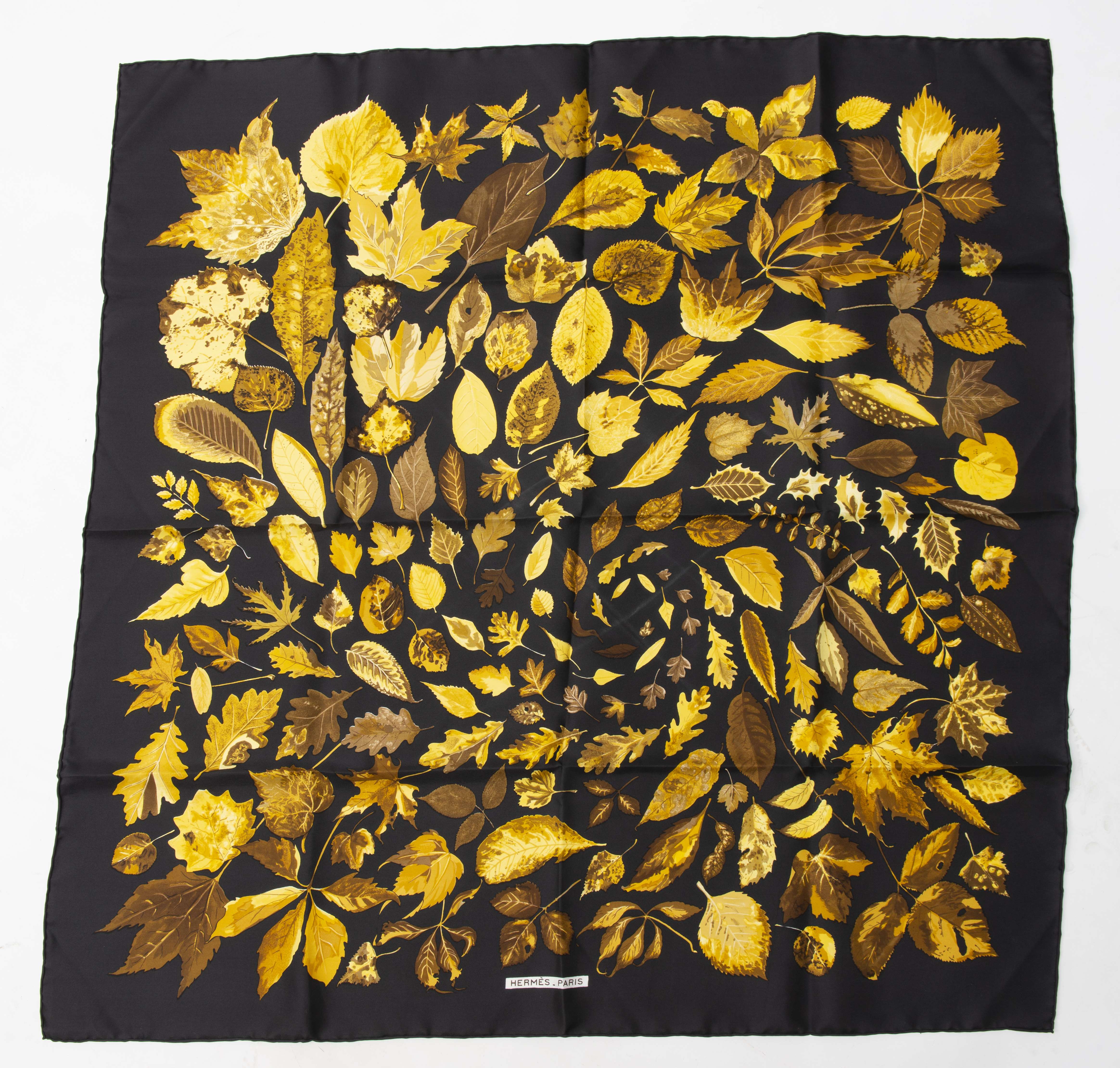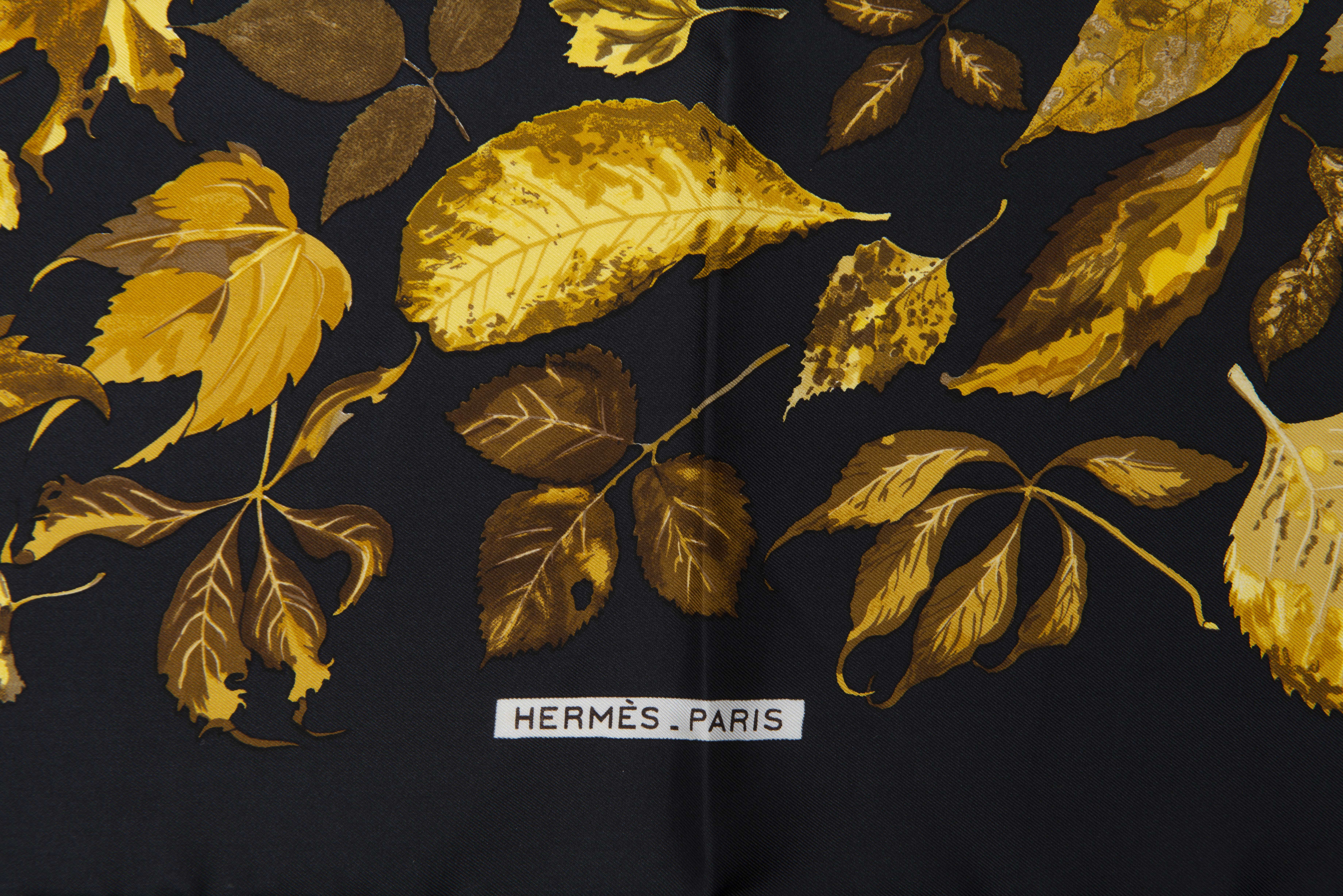 HERMES, carré en soie intitulé "Feuilles d'Automne"par Christiane Vauzelles, créé en 1968.