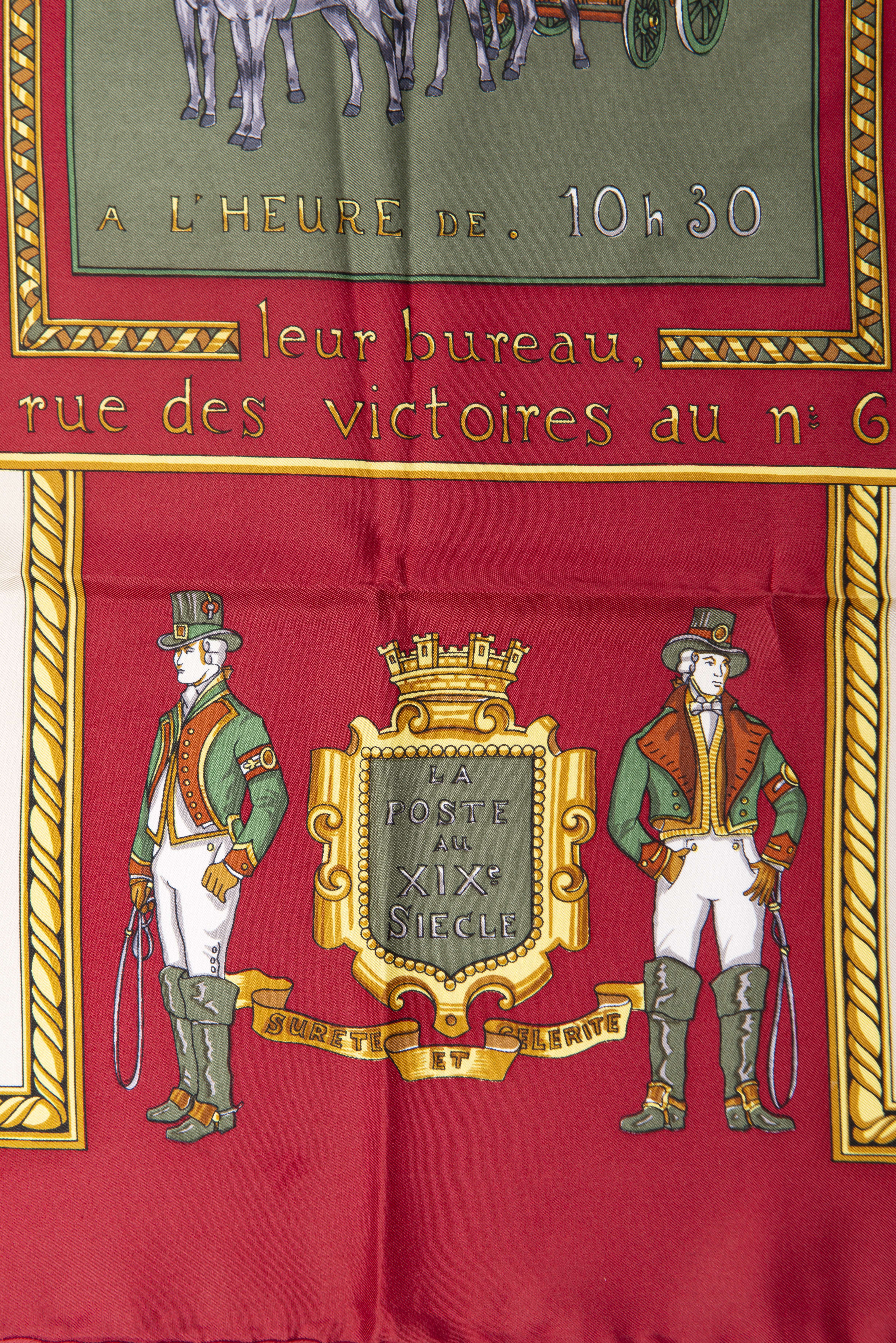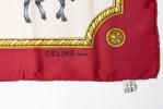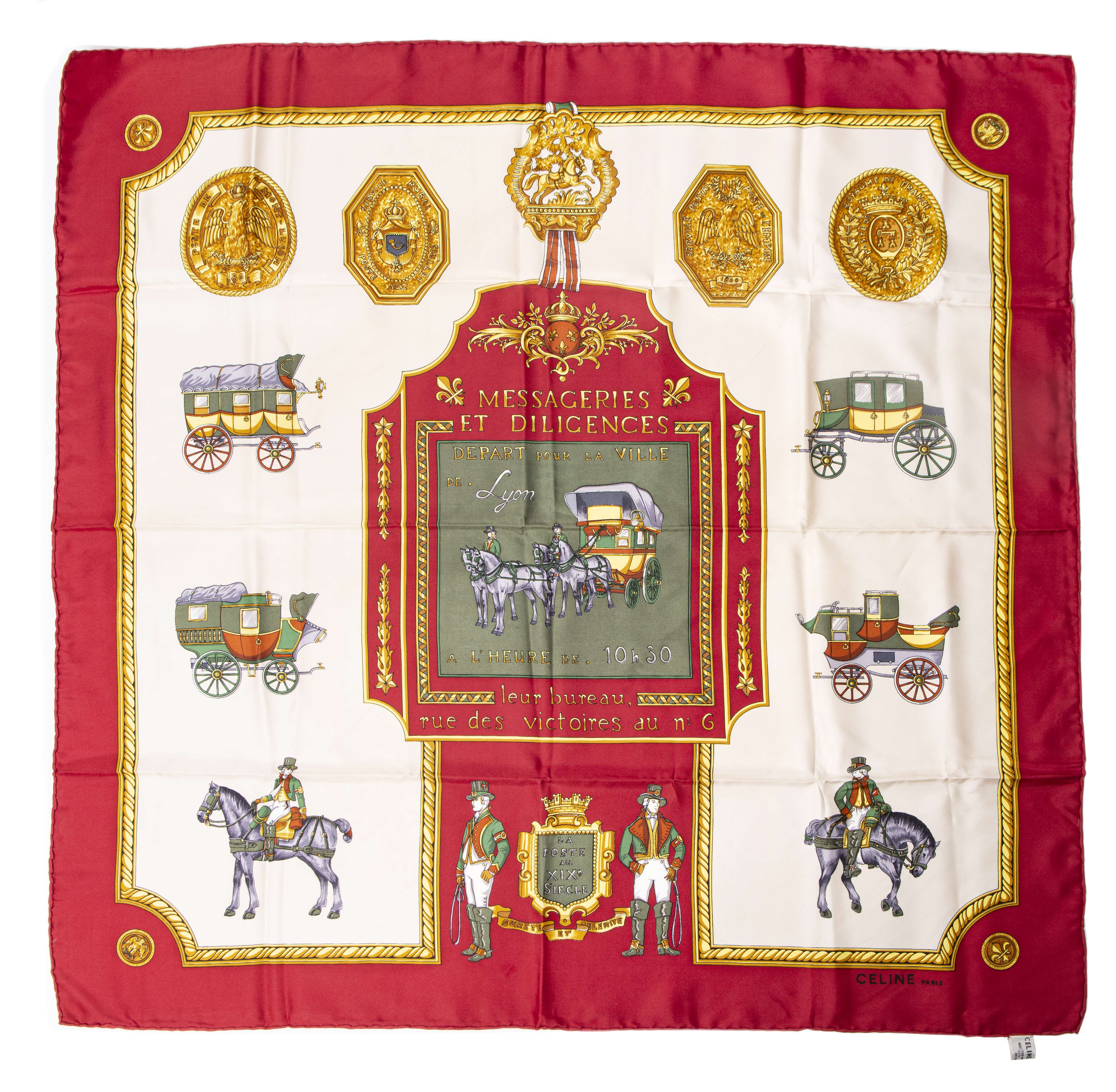 - CÉLINE, carré en twill de soie "Messageries et Diligences", à pourtour rouge. Couleurs : Rouge, Beige, Vert