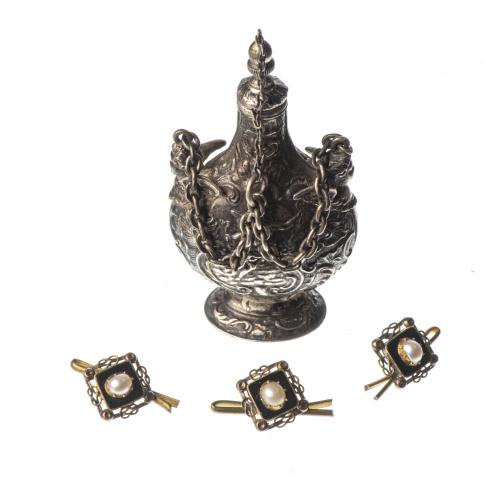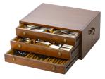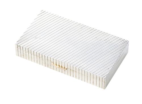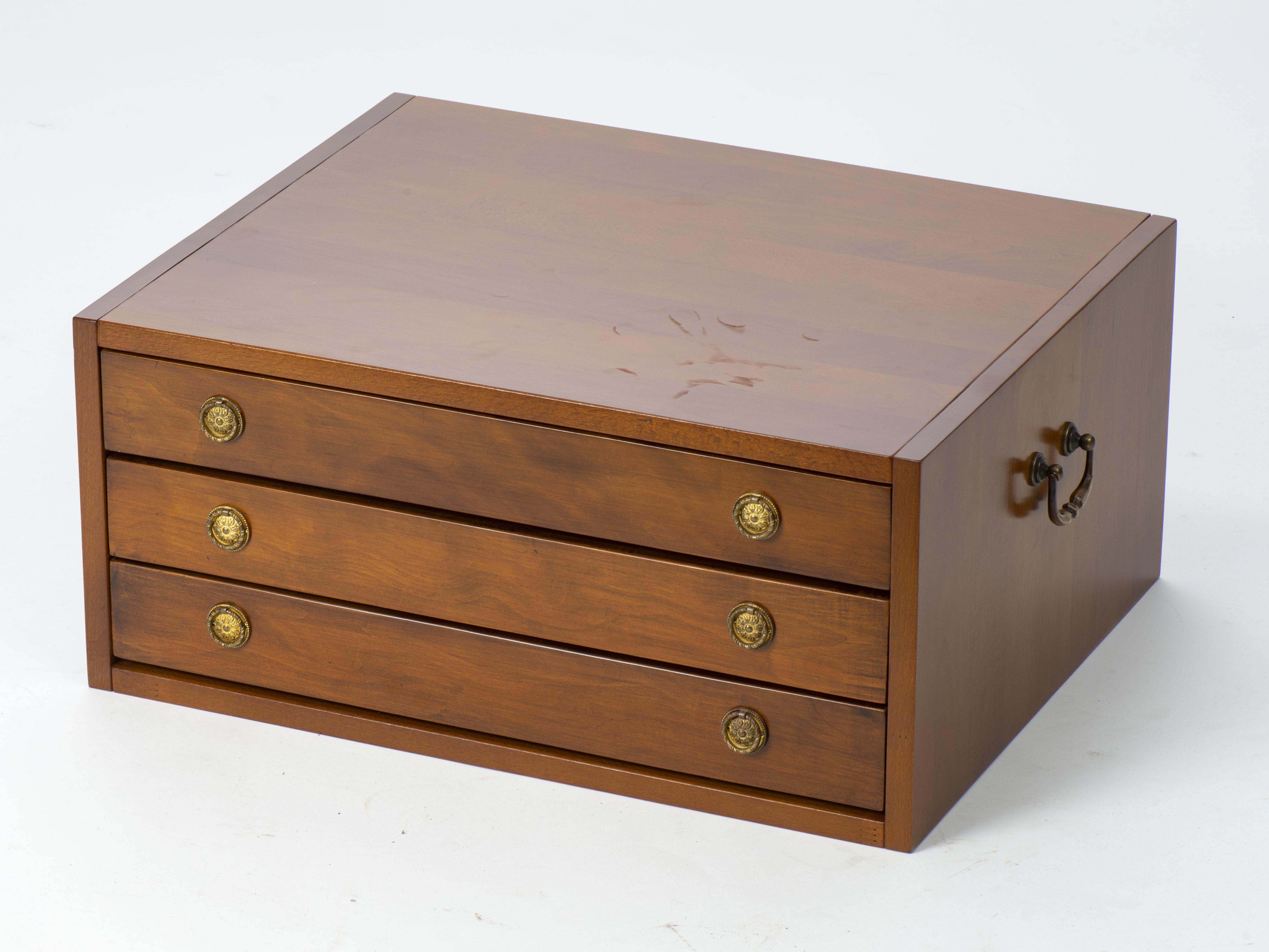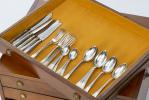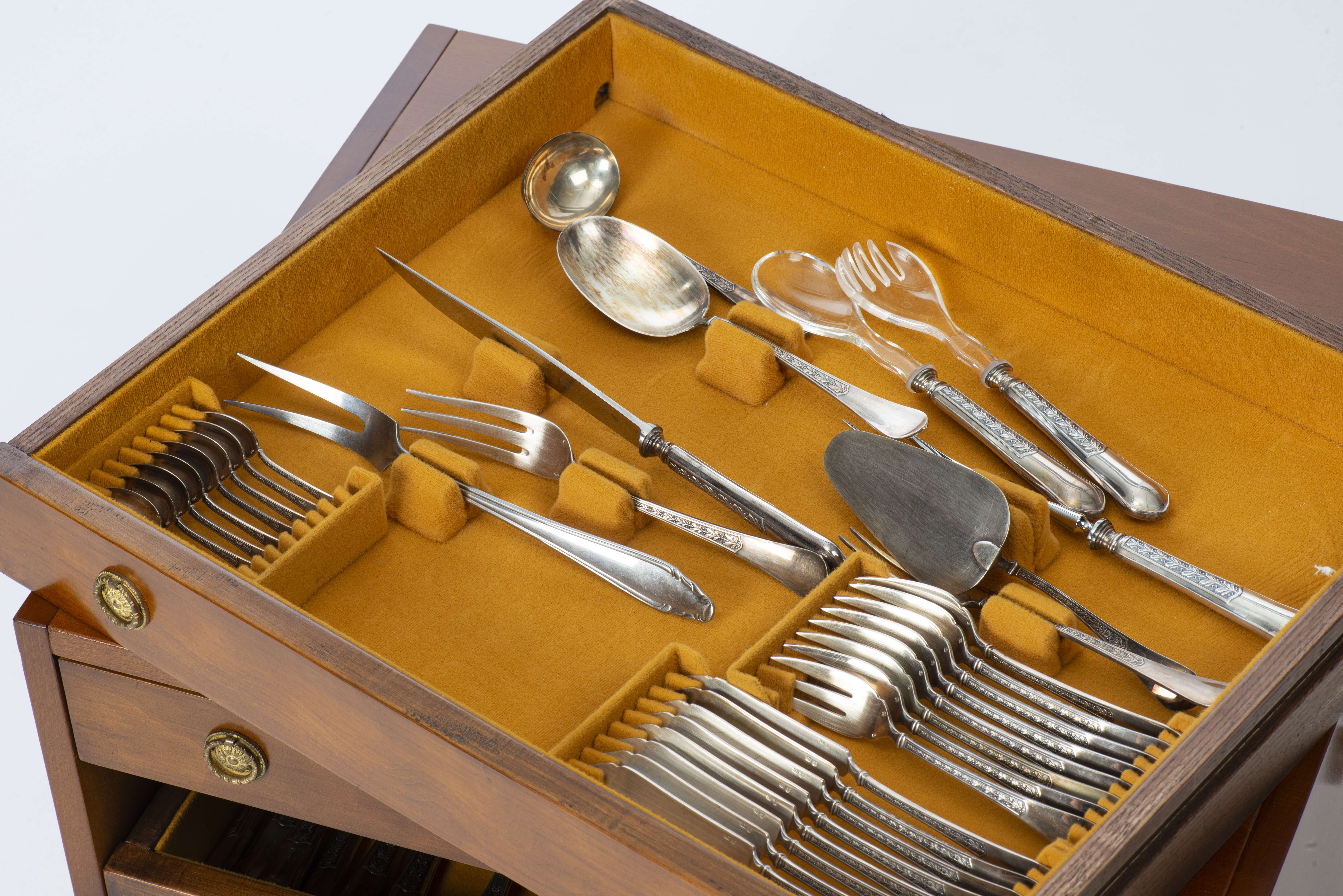 JEZLER, Ménagère en argent .800 pour huit personnes au décor au Laurier double dans son argentier à 3 tiroirs :
