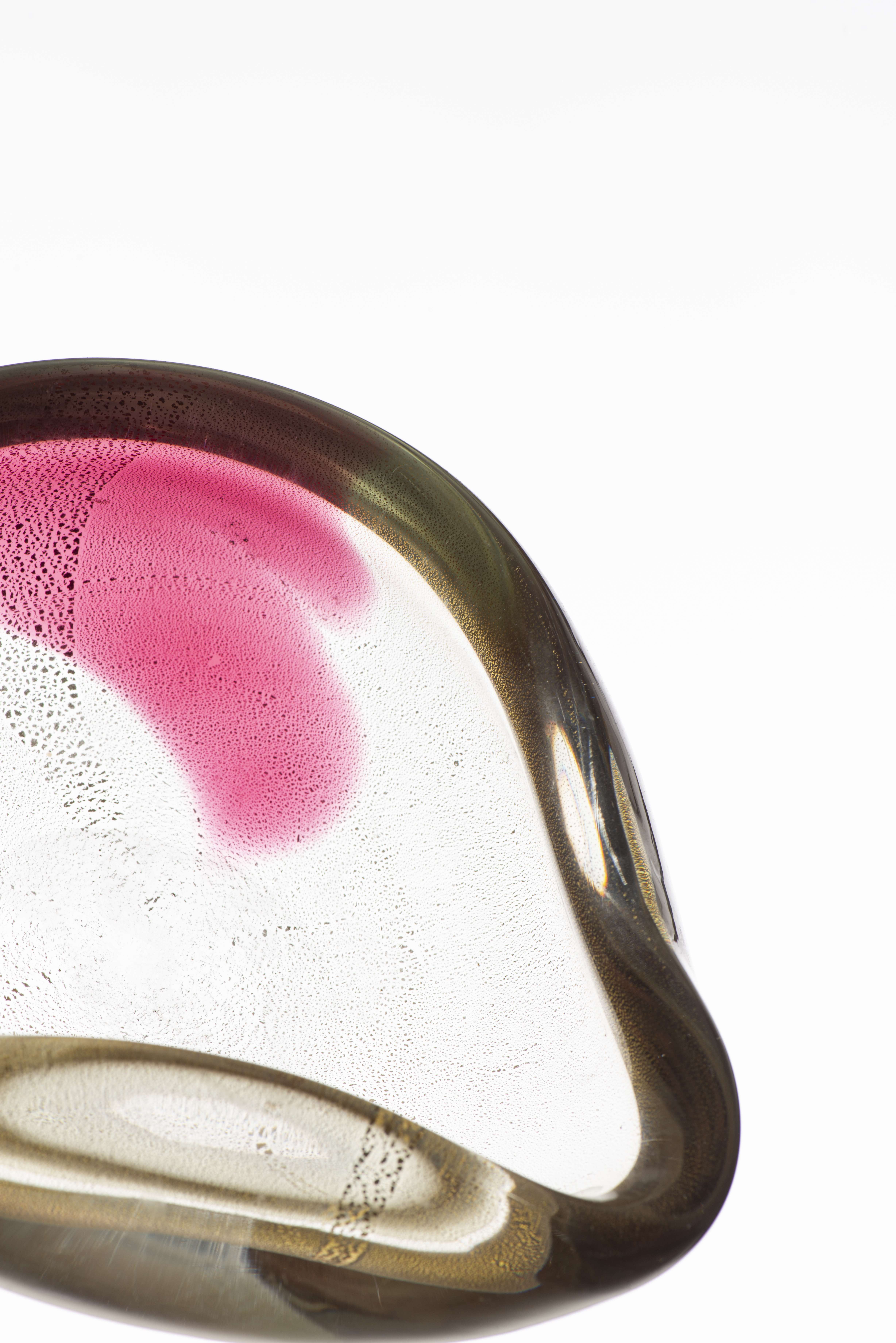 - Grand vide-poche Murano de forme libre en verre épais et feuille d'or, 7 x 17 cm