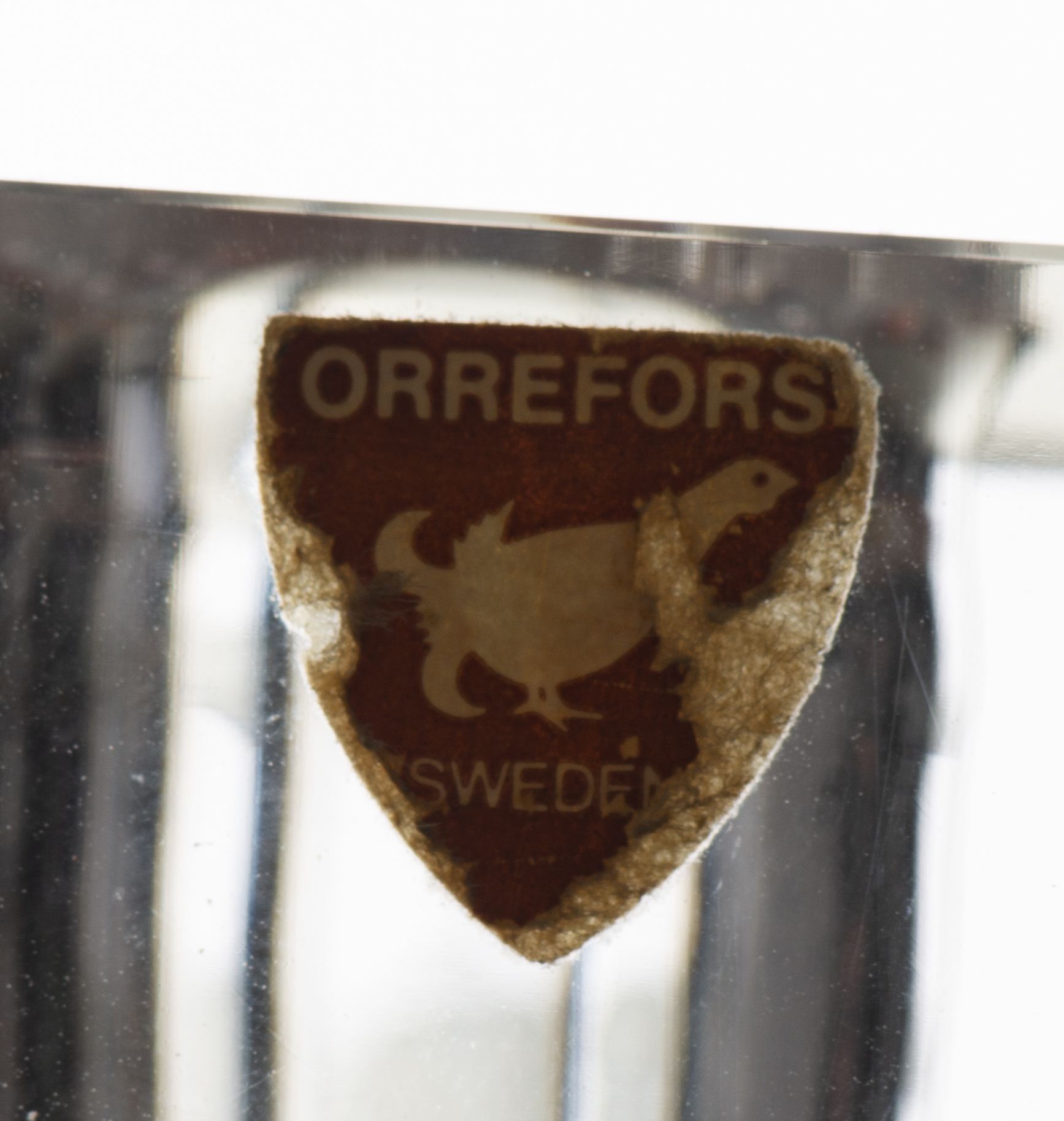 - Paire de bougeoirs Orrefors (Suède) en cristal de forme hexagonale, 5 x 6 cm