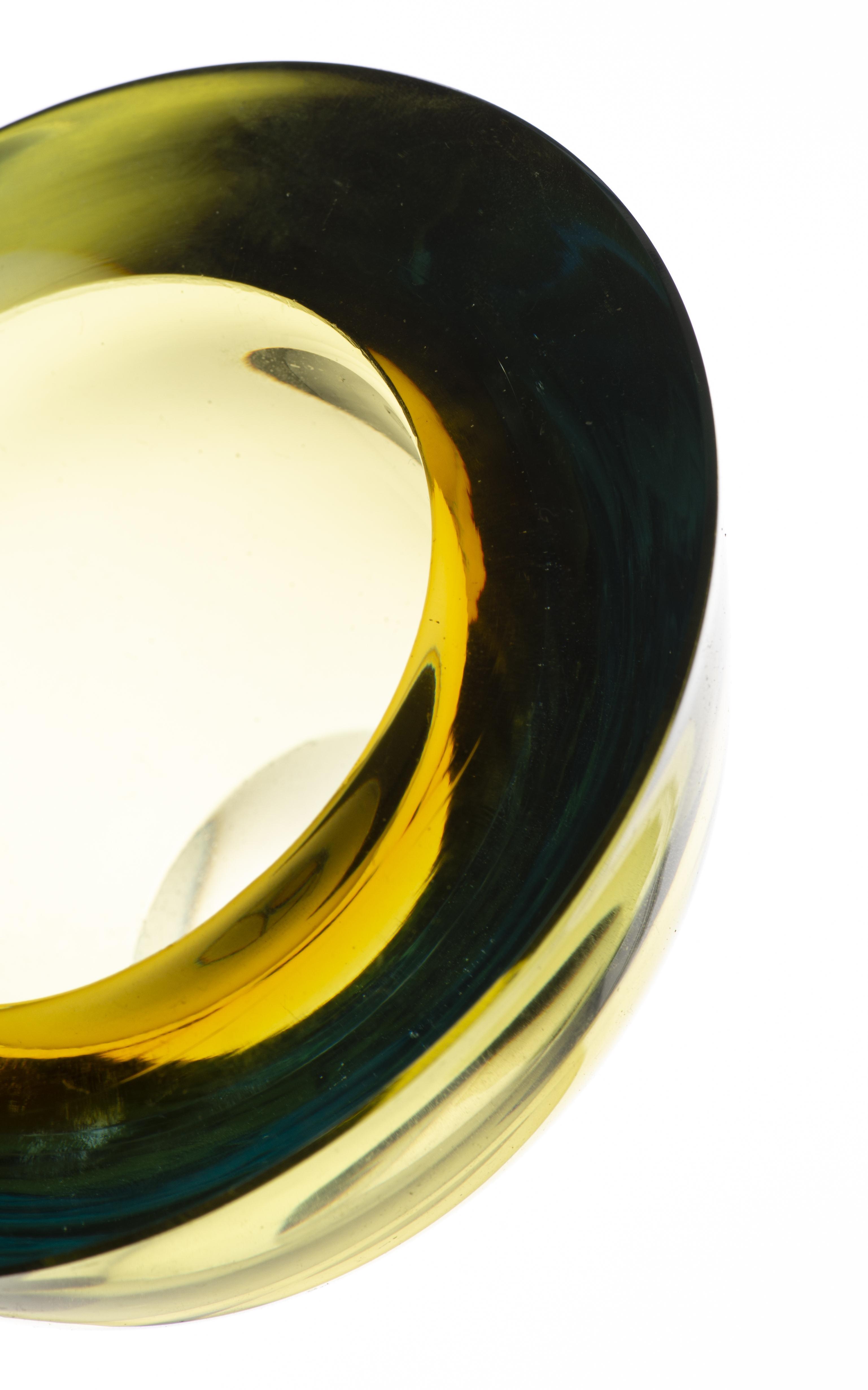 - Vide-poche Murano en verre épais avec un effet de couleur passant du jaune au bleu, 5 x 11 cm