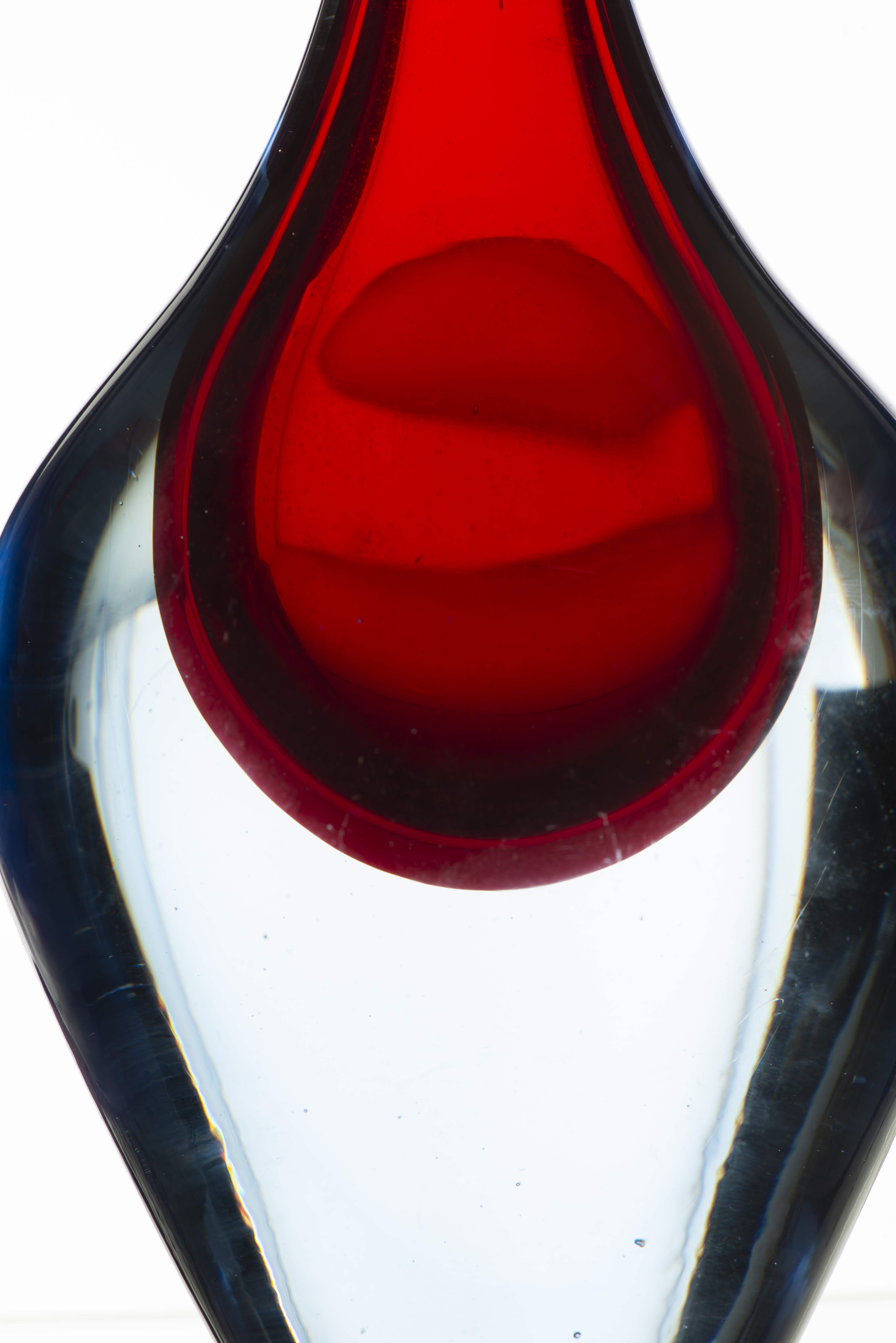 - Grand vase Murano en verre rouge et bleu, H. 33 cm & L. 13 cm