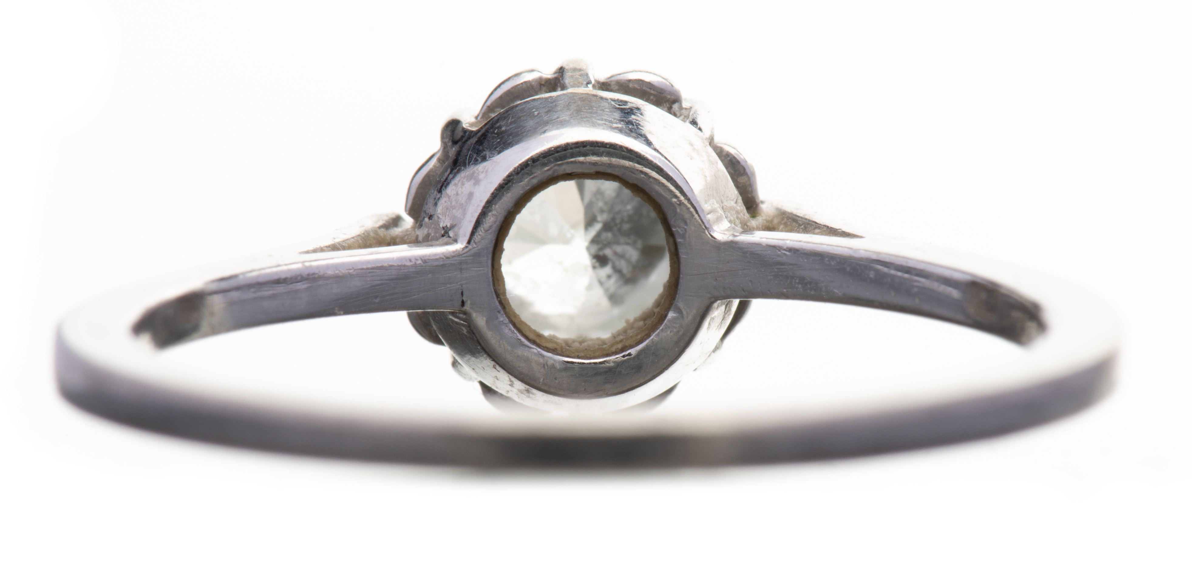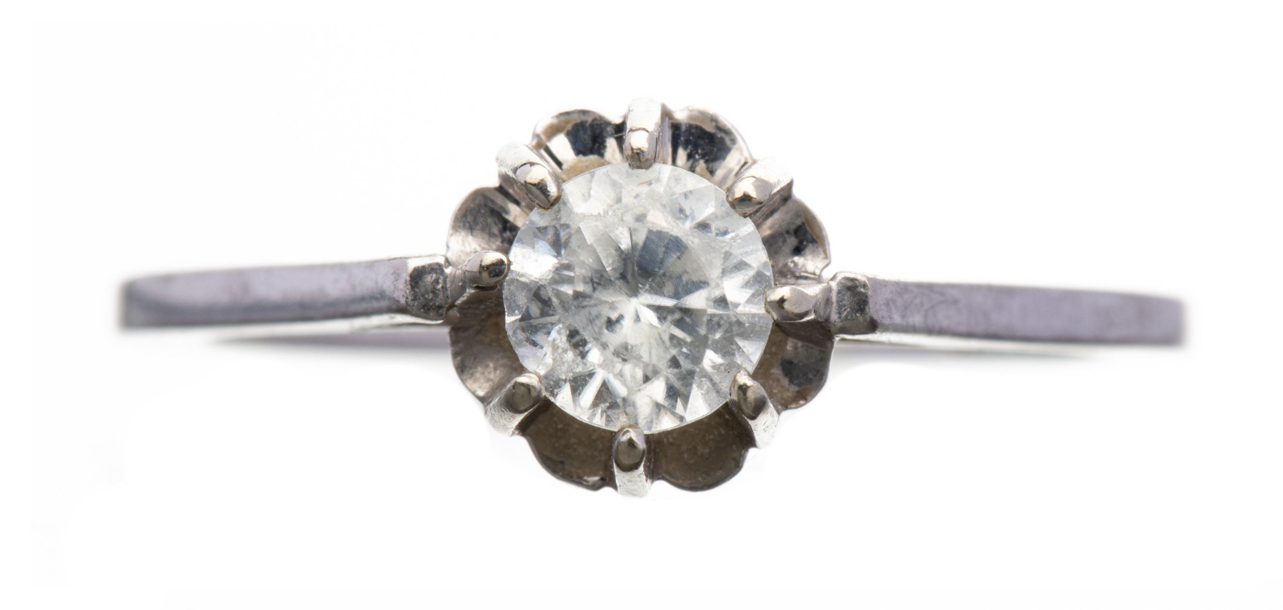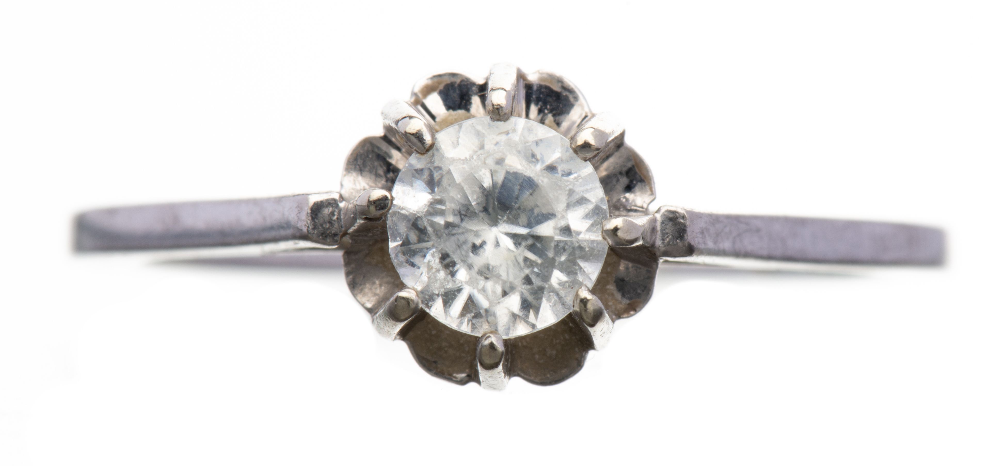 Bague solitaire en or blanc .750 orné d'une imitation diamant.