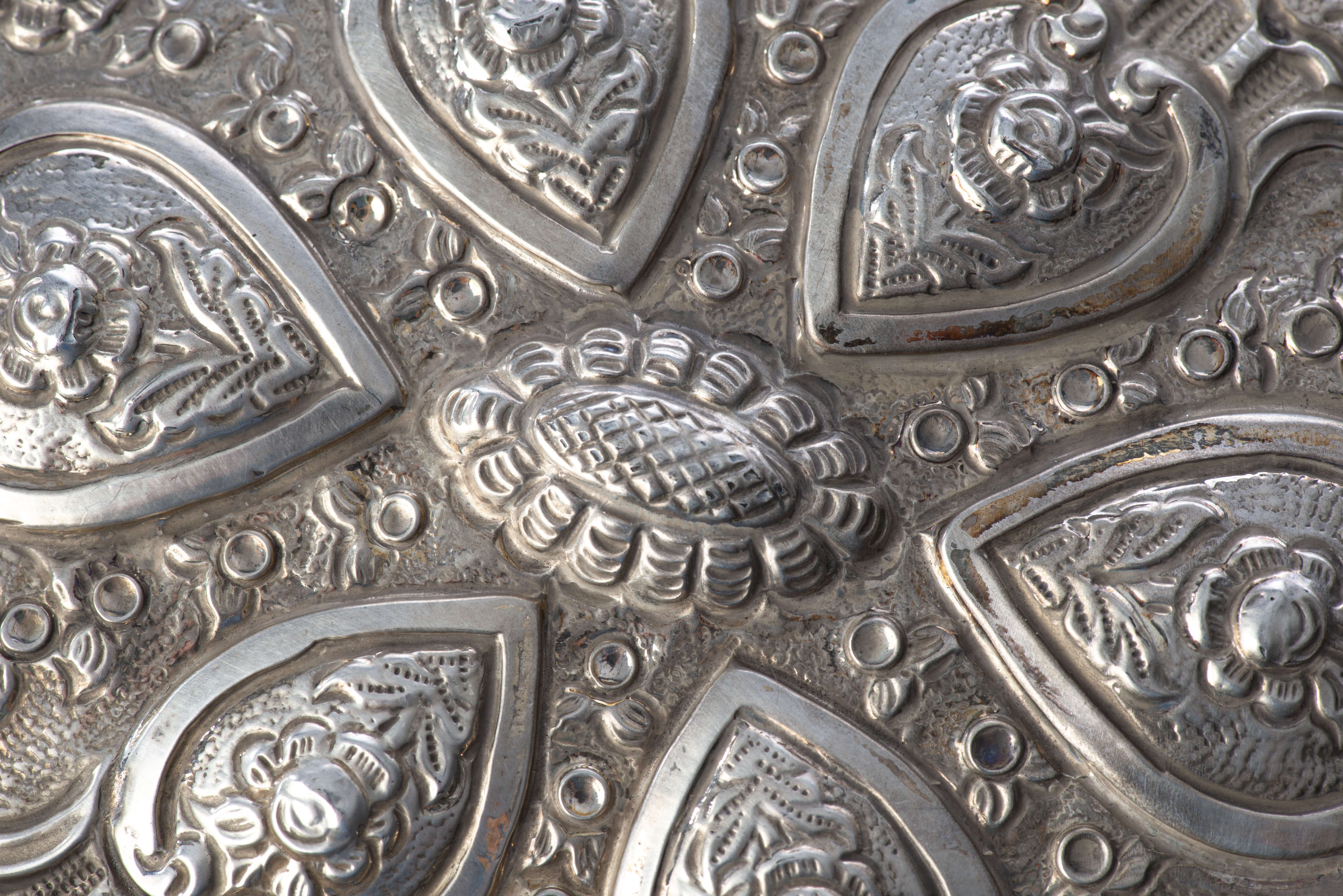 Travail Turc, Ensemble de trois miroirs en argent .900 à décor repoussé