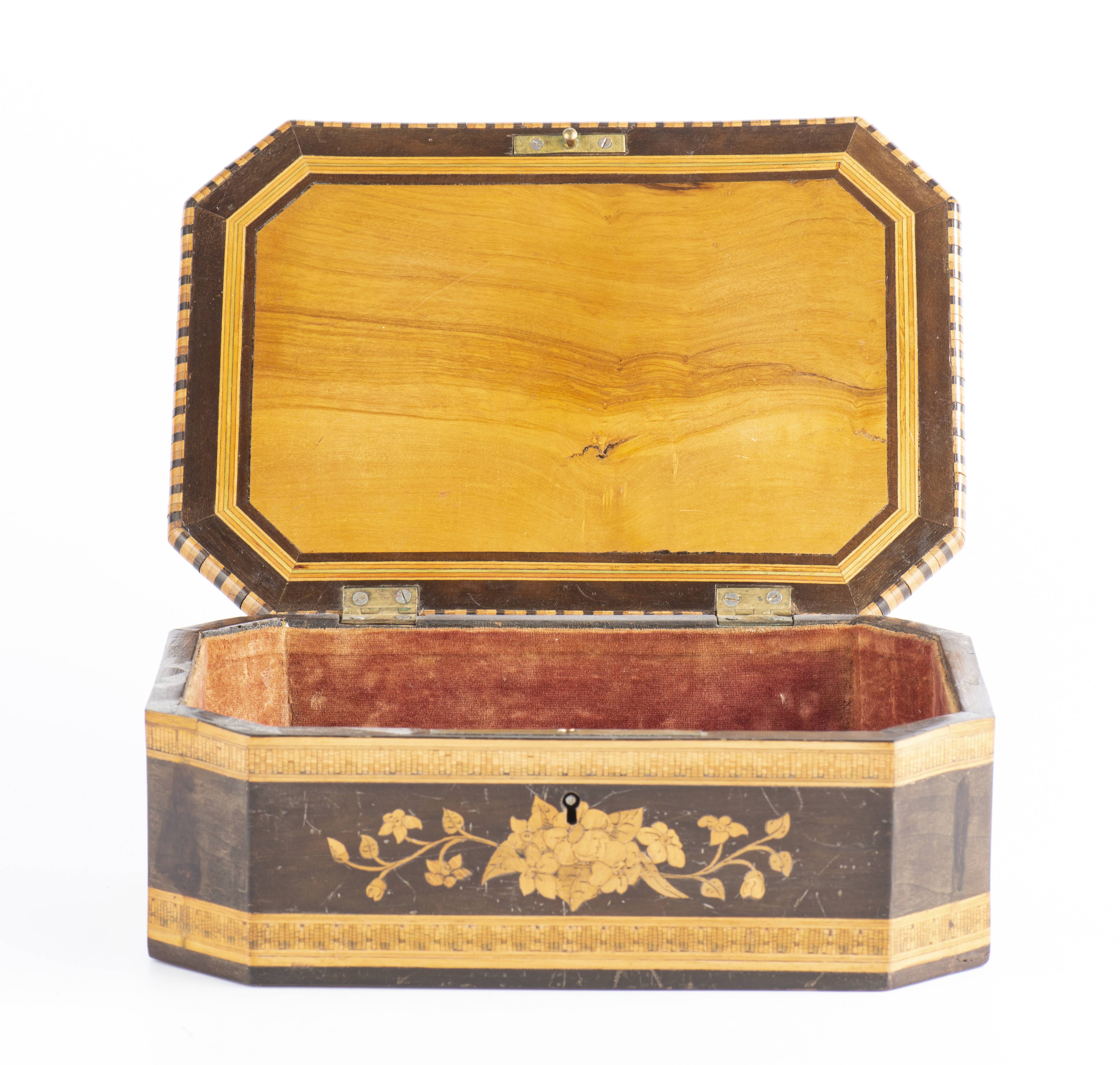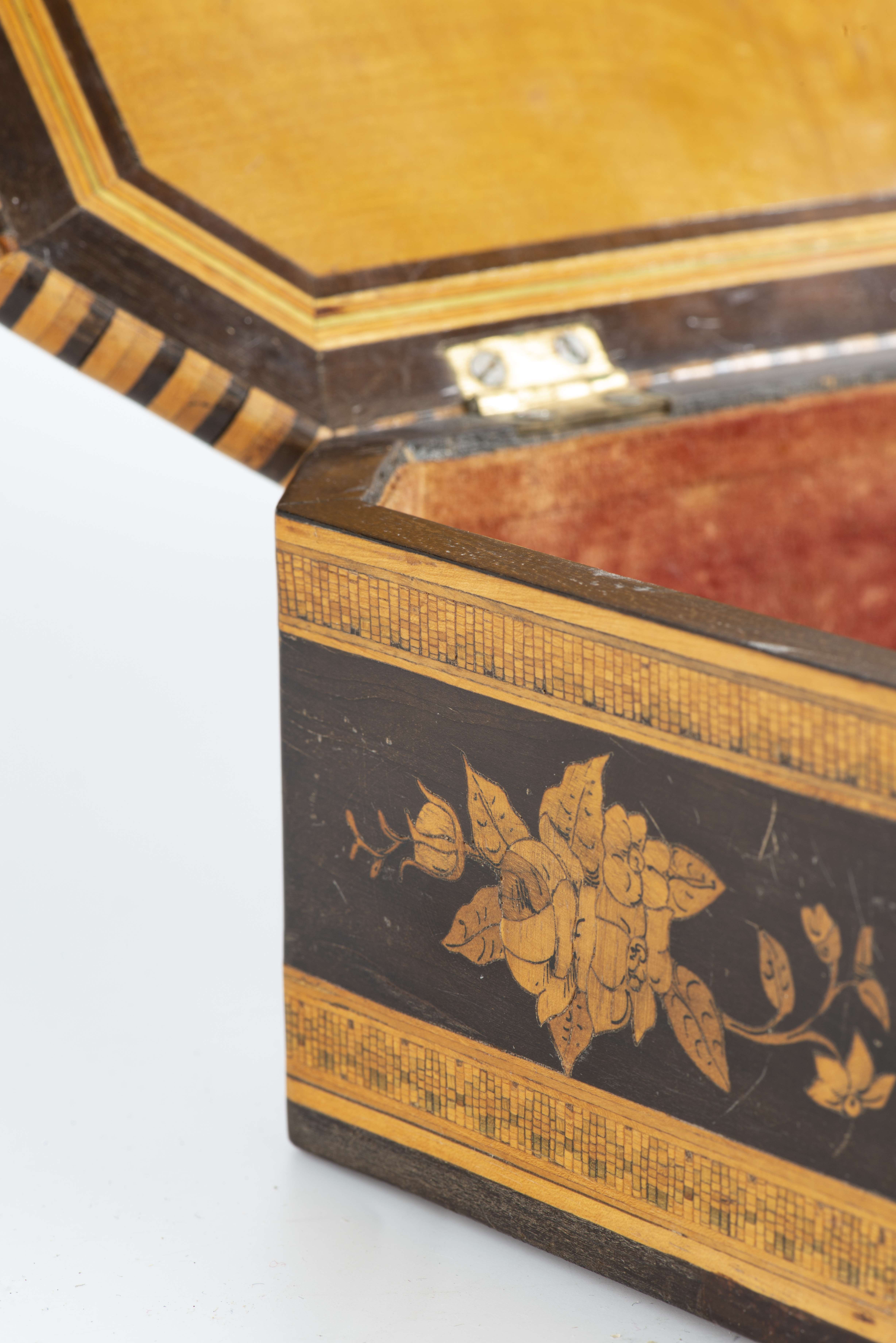 Boîte rectangulaire à angles coupés à marqueterie de paille et figures de Sorrente, XIXe