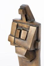 Sculpture cubiste en bronze plein d'une femme enceinte, tirage num. 1/5, non signé.