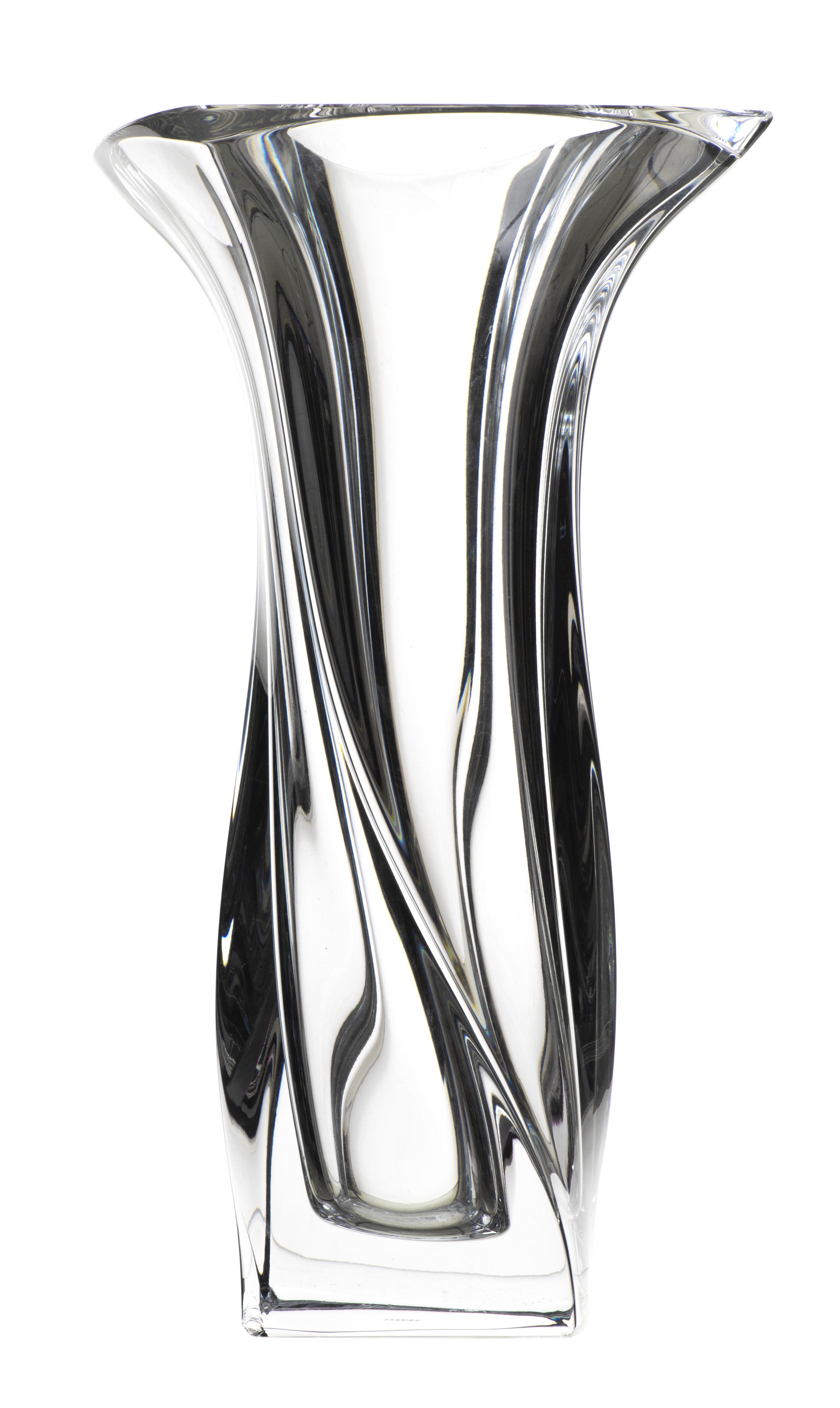 VAL SAINT-LAMBERT & SEVRES, un vase en cristal de Sèvres et deux coupes en cristal taillé en pointe de diamant dont une signée Val St. Lambert.