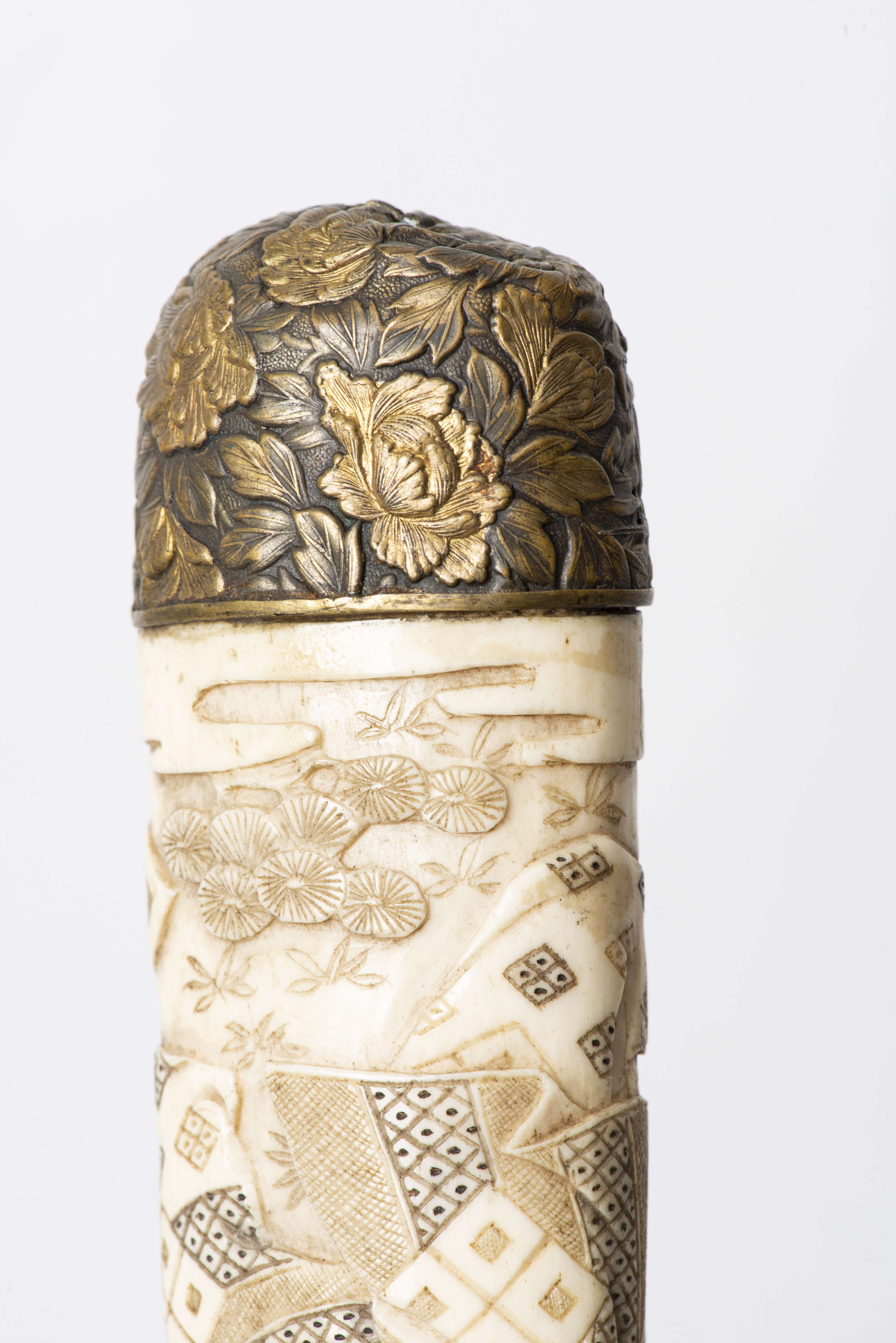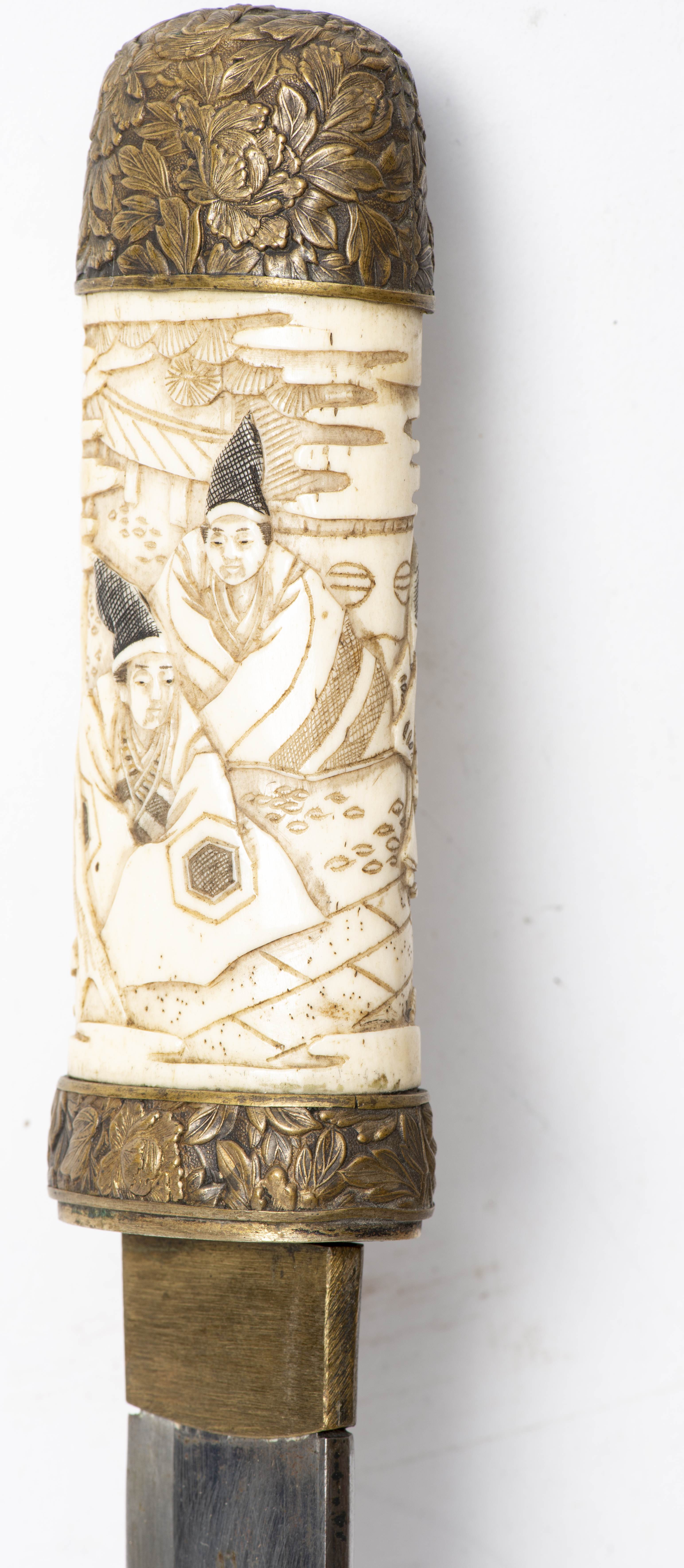 JAPON, tanto à manche et fourreau sculpté en ivoire.