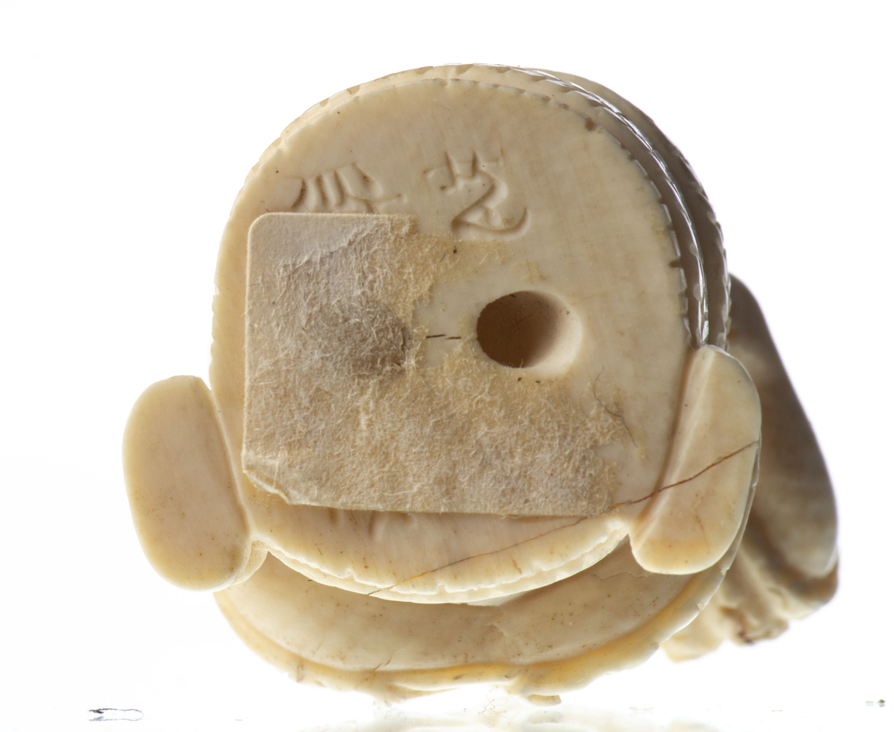 JAPON, cinq Netsuke et un Okimono en ivoire