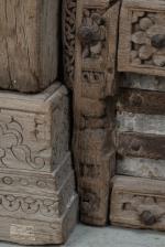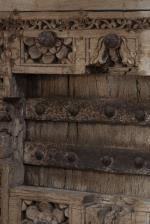 INDE, Grande porte avec encadrement en bois sculpté composé de deux montants, un chapiteau et ses éléments décoratifs, de deux battants sculptés avec leurs prises. Fin XIXe ?