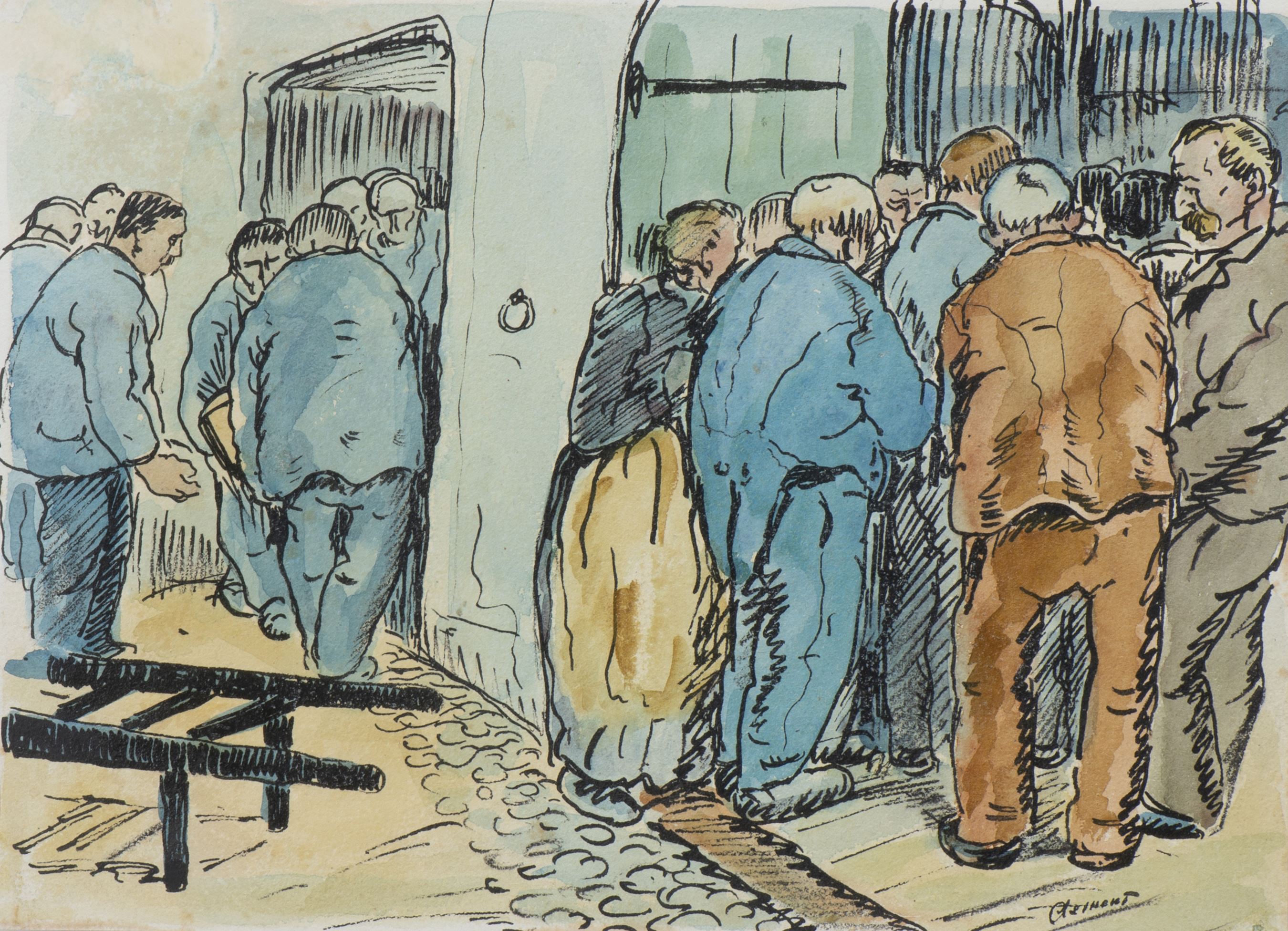 Charles CLÉMENT (1889-1972), "Obsèques au village", aquarelle