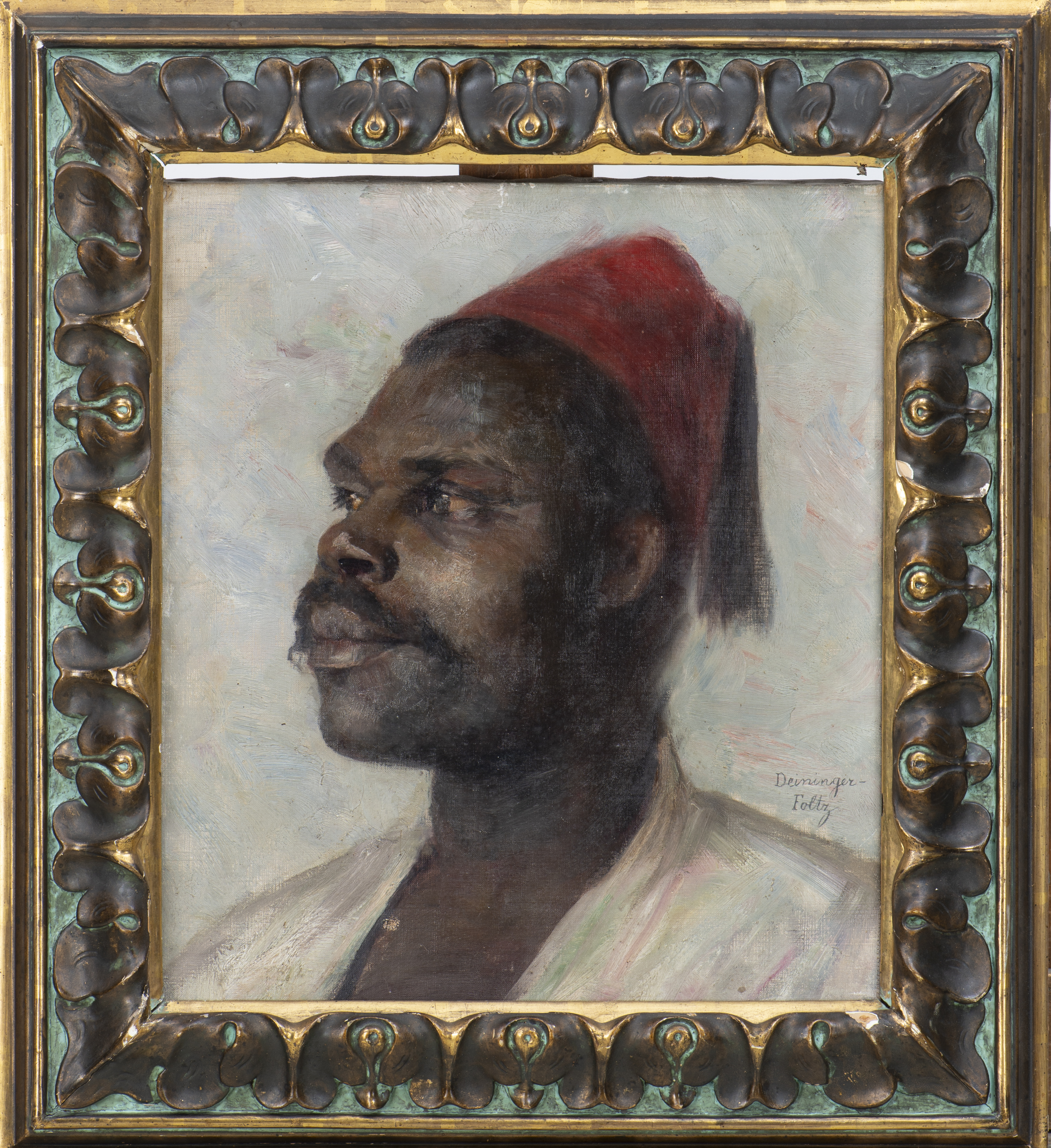 Deininger FOLTZ (XIXe-Xxe), 'Portrait d'un homme coiffé de la Fez', huile sur toile, signé en bas à droite.