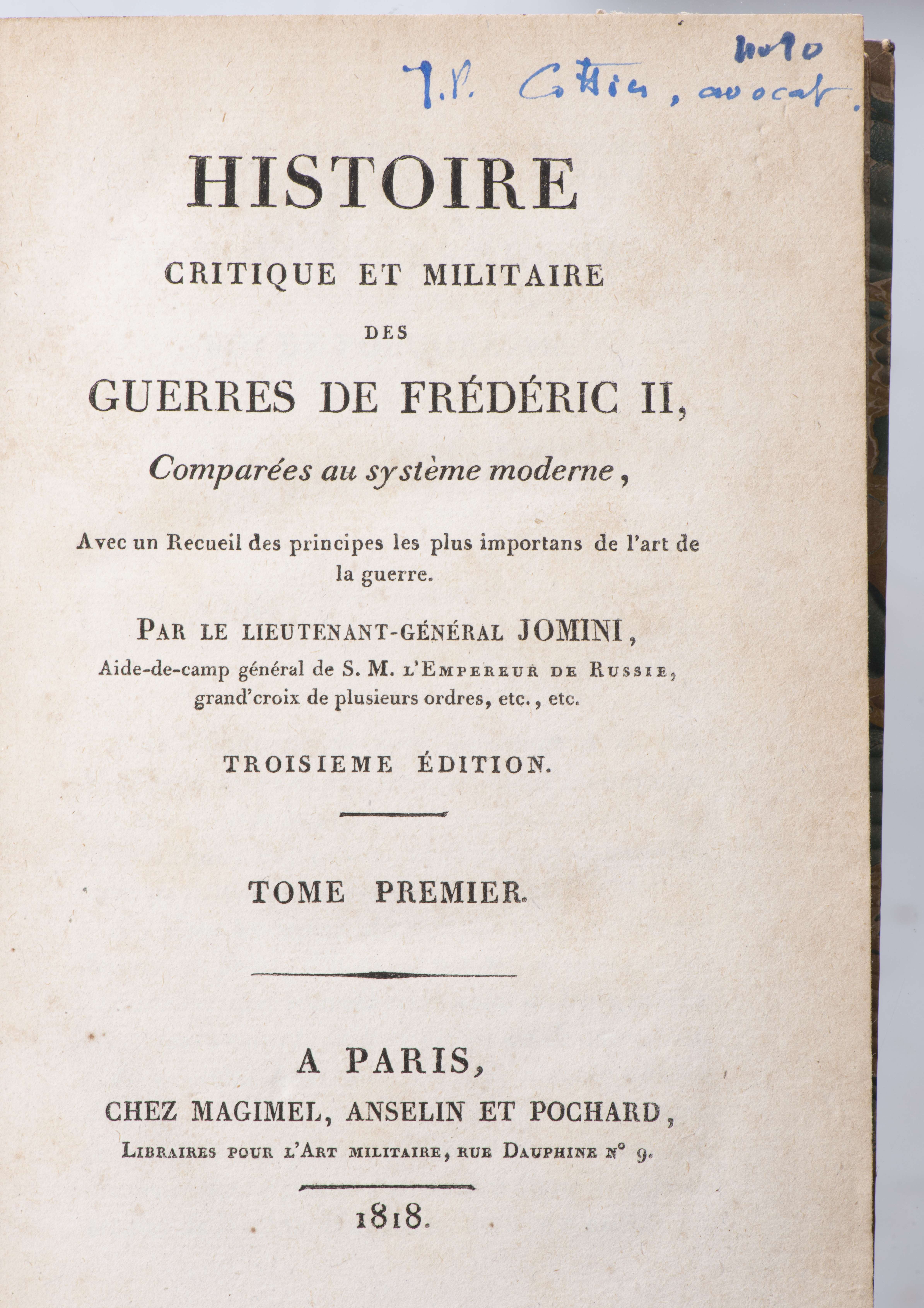 Antoine-Henri JOMINI (Baron de) (1779-1869), "Histoire critique militaire des Guerres de Frédéric II, Comparées au système moderne", Chez Magimel, Anselin et Pochard, Paris, 1818.