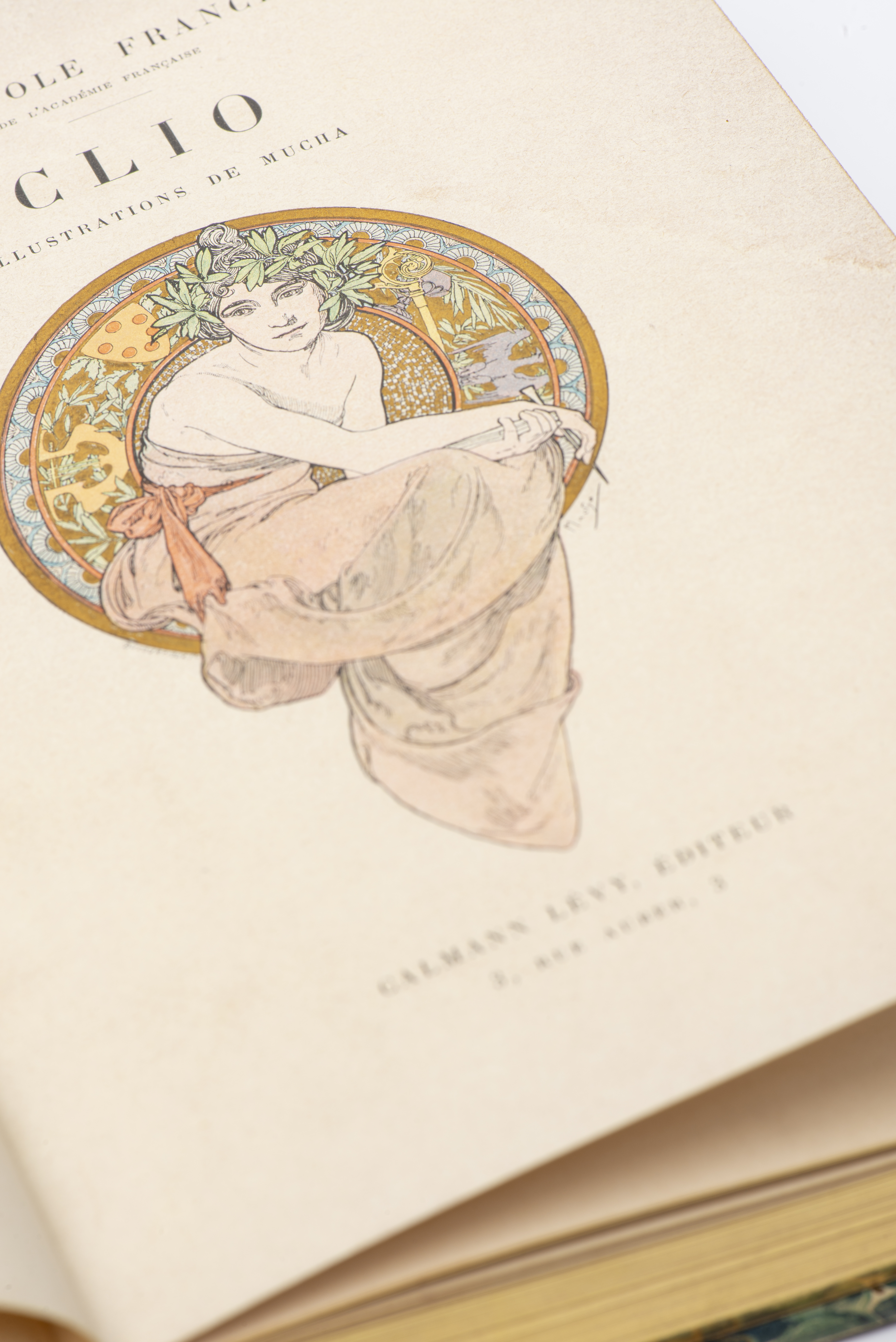 Anatole FRANCE, "Clio", Illustration d'Alphonse MUCHA (1860-1939), Paris, Calmann Lévy, 1900, édition originale, illustré en couleur par Mucha d'une vignette sur la couverture, de 7 hors-texte et 5 vignettes.