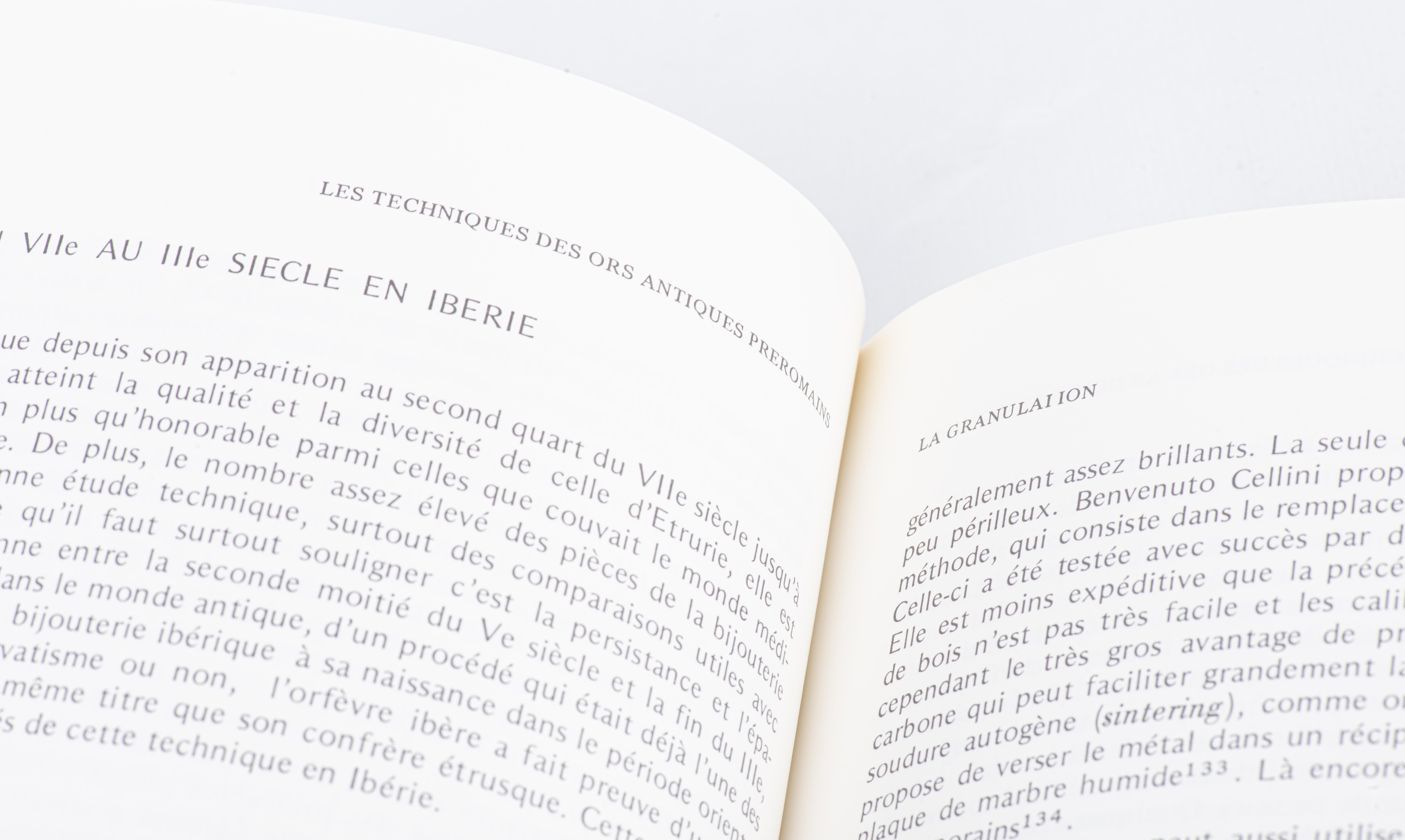 NICOLINI, Gérard, "Techniques des ors antiques. La bijouterie ibérique du VIIe au IVe siècle", vol. I et II, Editions Picard, Paris, 1990.