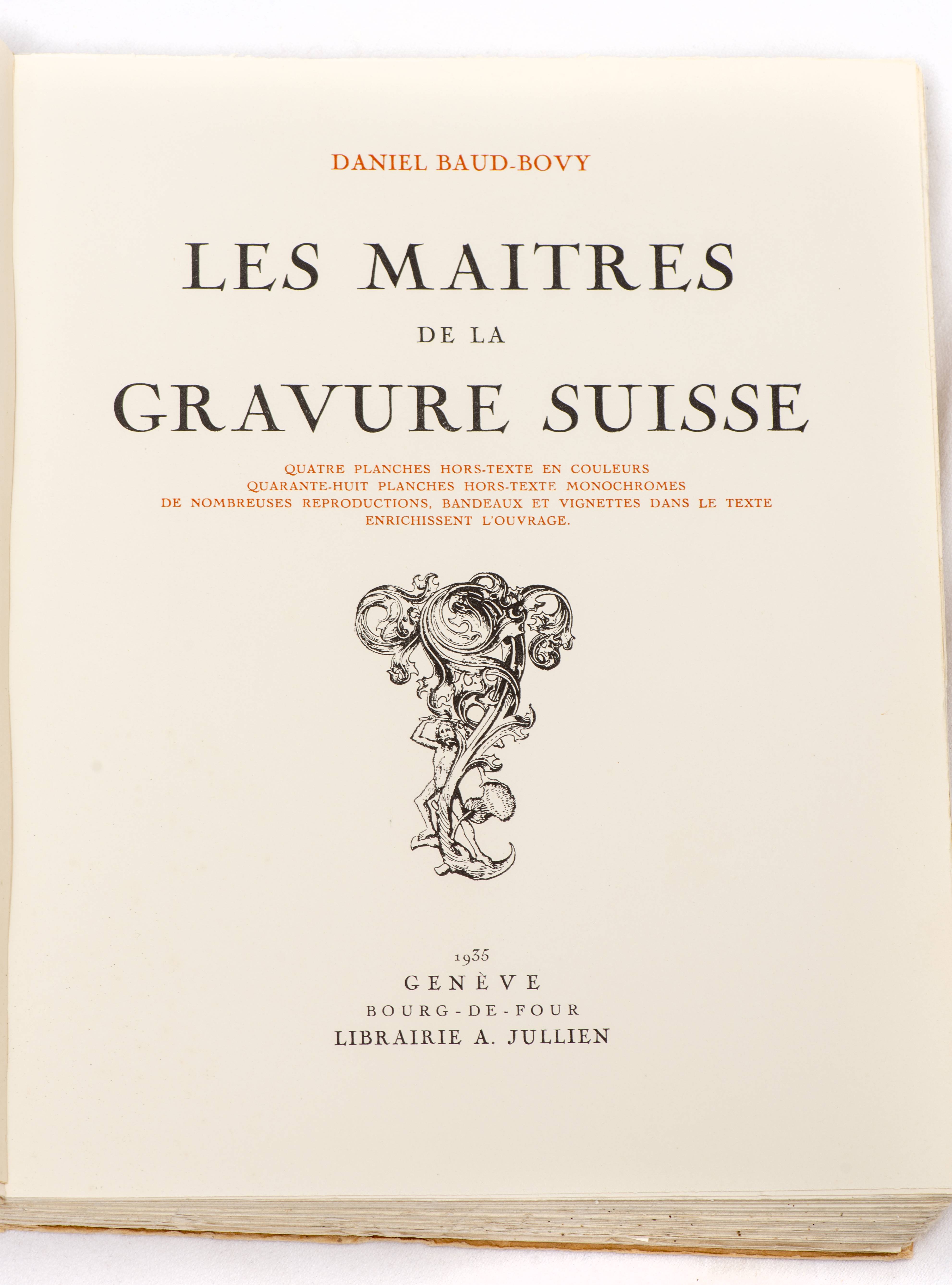 - Baud-Bovy, Daniel, "Les maîtres de la gravure suisse", Editions du Journal de Genève, Genève, 1935.