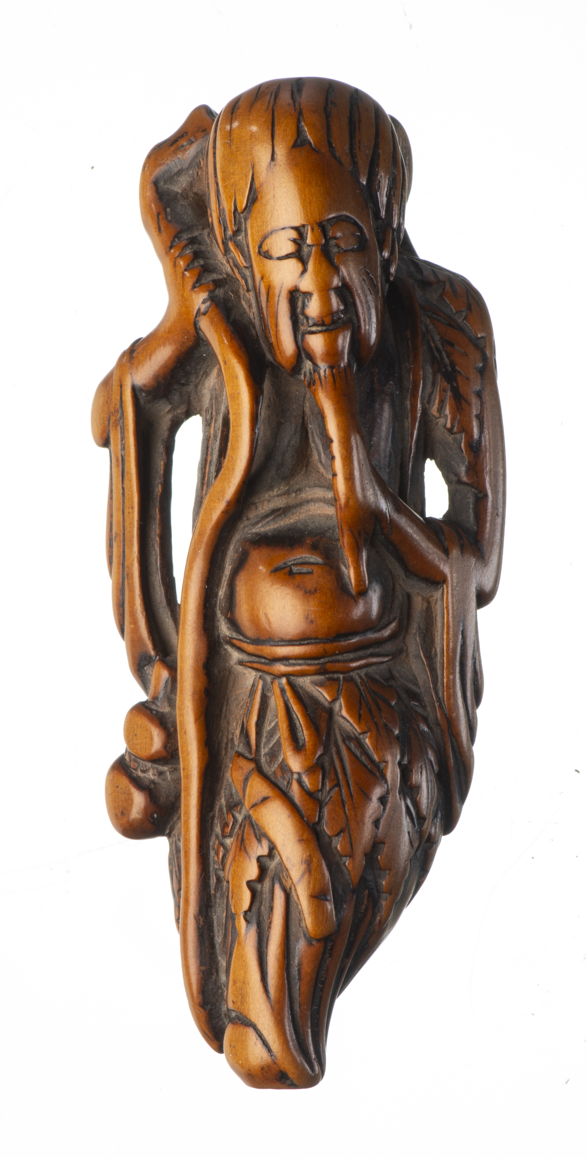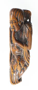 JAPON - XIXe - Netsuke en bois représentant un Sennin