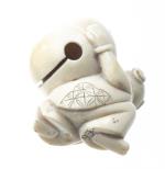 JAPON - XXe - Netsuke en ivoire représentant un Karako portant sur son dos une clochette Mokugyo