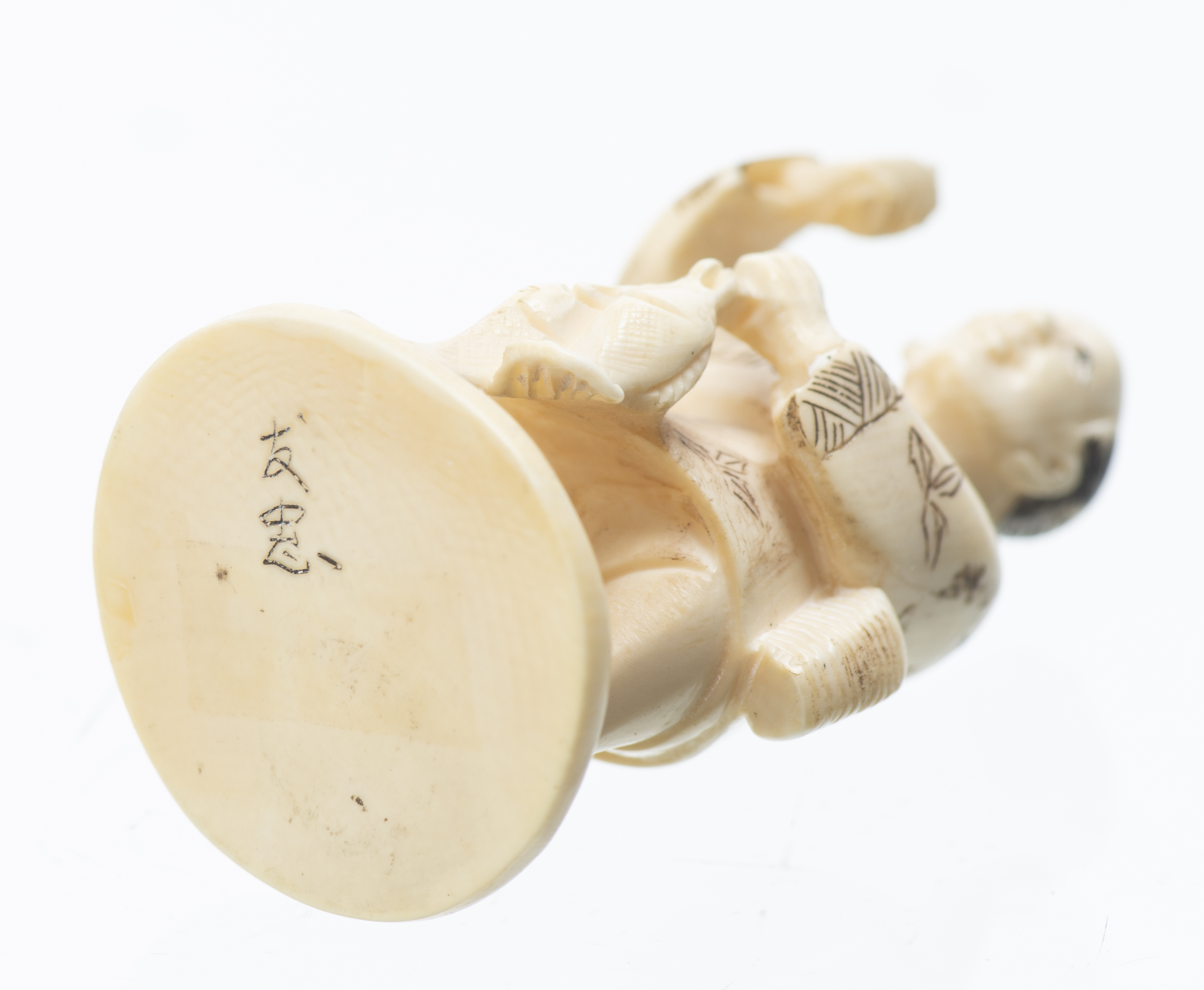 JAPON - XXe - Netsuke en ivoire représentant un pêcheur