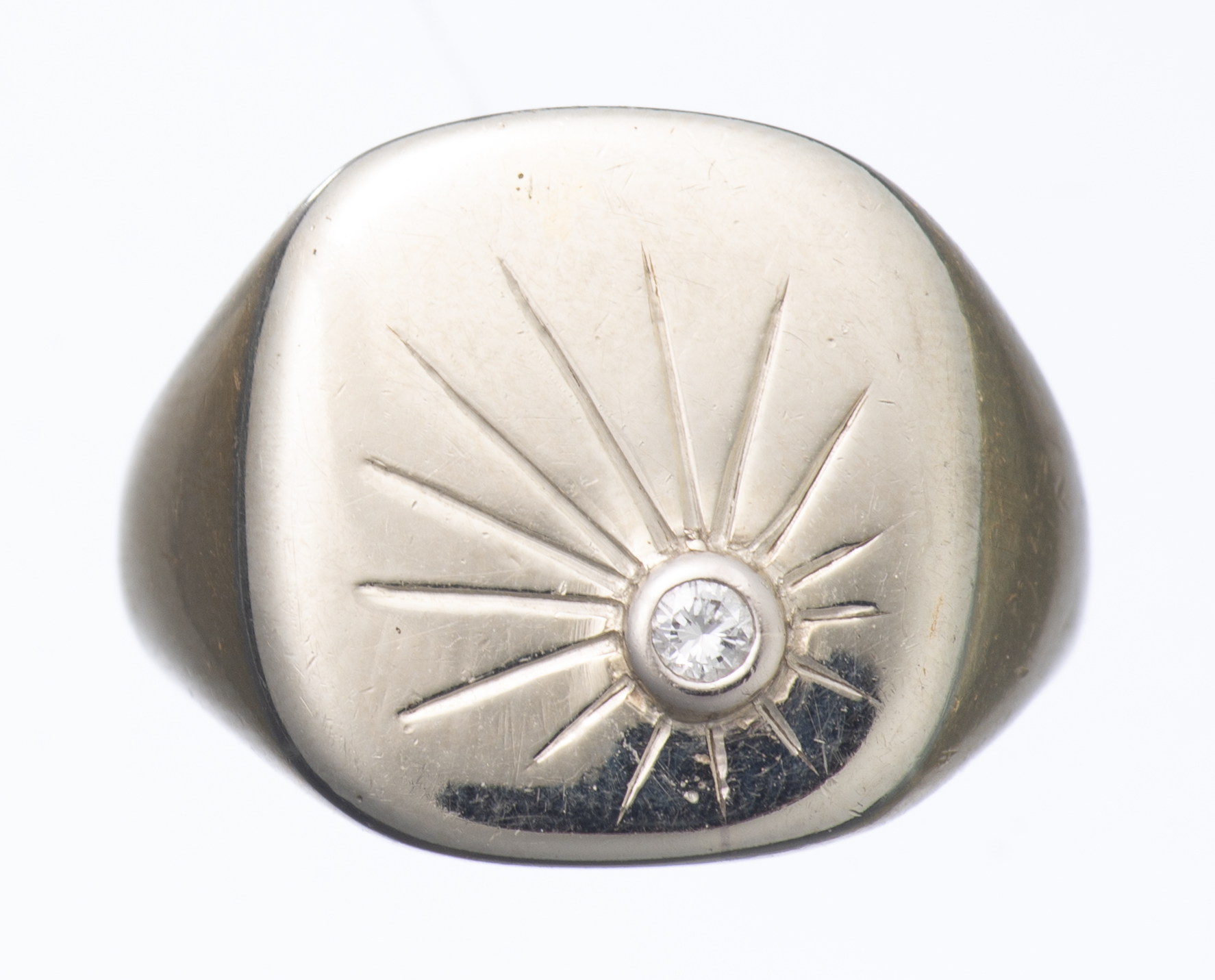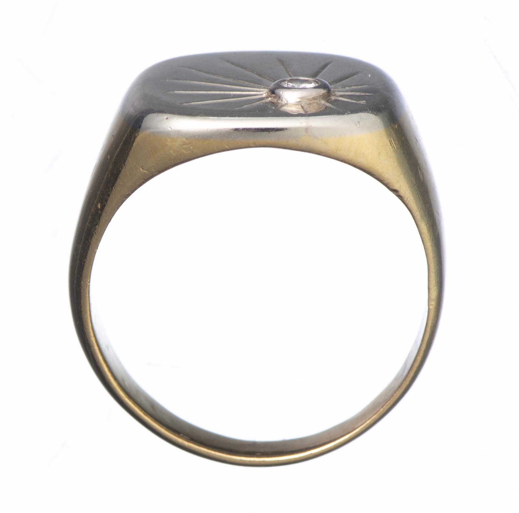 Chevalière en or jaune et or blanc sertie d'un diamant