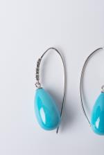 Paire de pendants d'oreilles en or blanc à turquoise et diamants