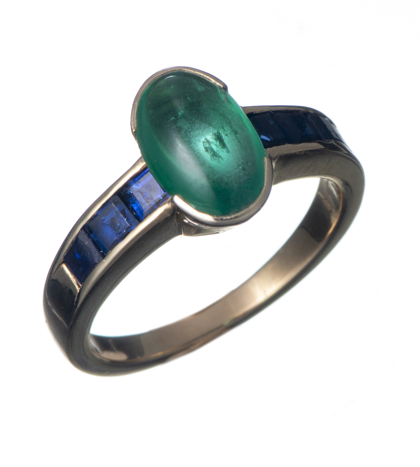 Bague en or jaune sertie d'une émeraude et de saphirs