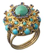Bague en or jaune rehaussée de turquoises et de petits saphirs