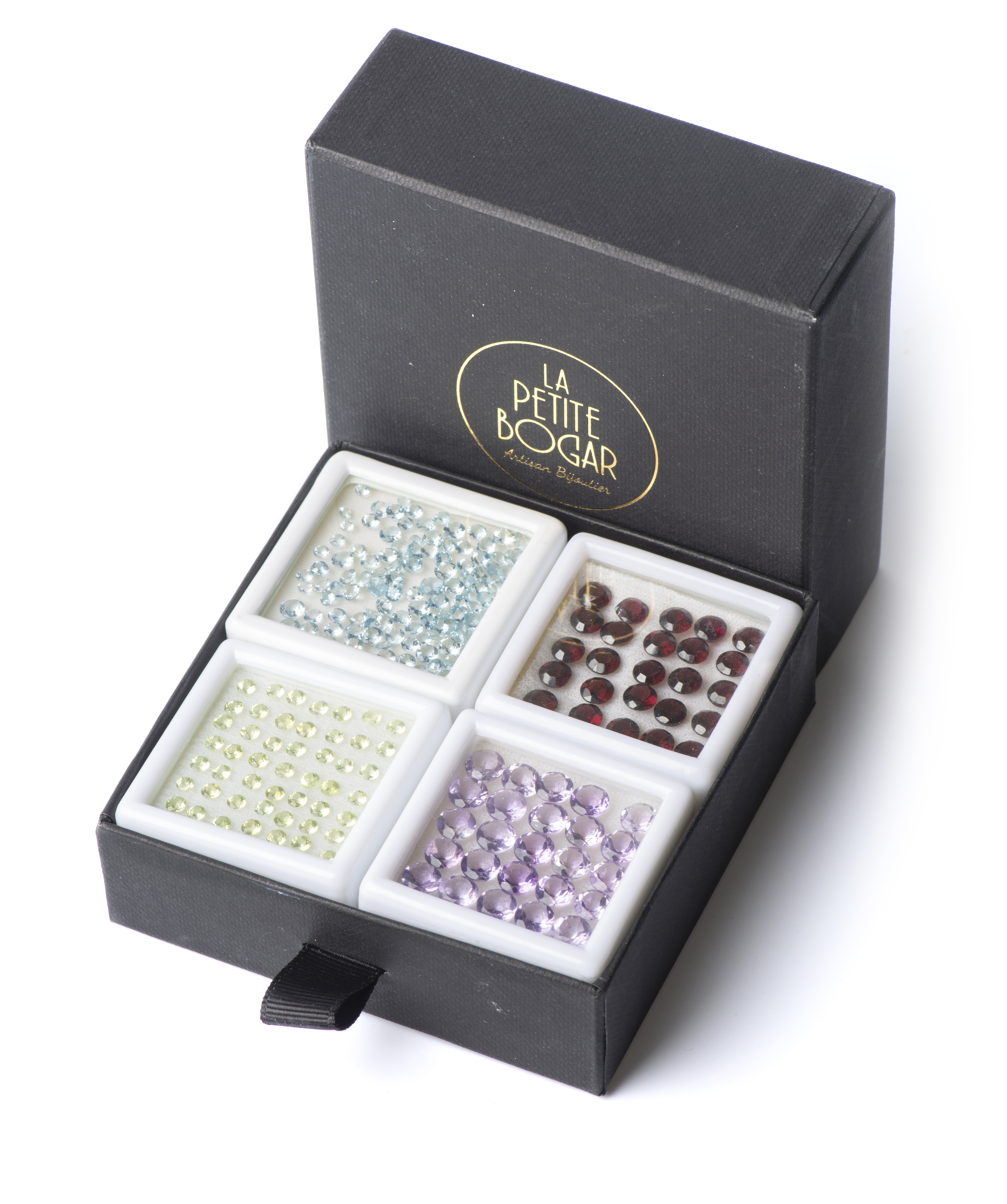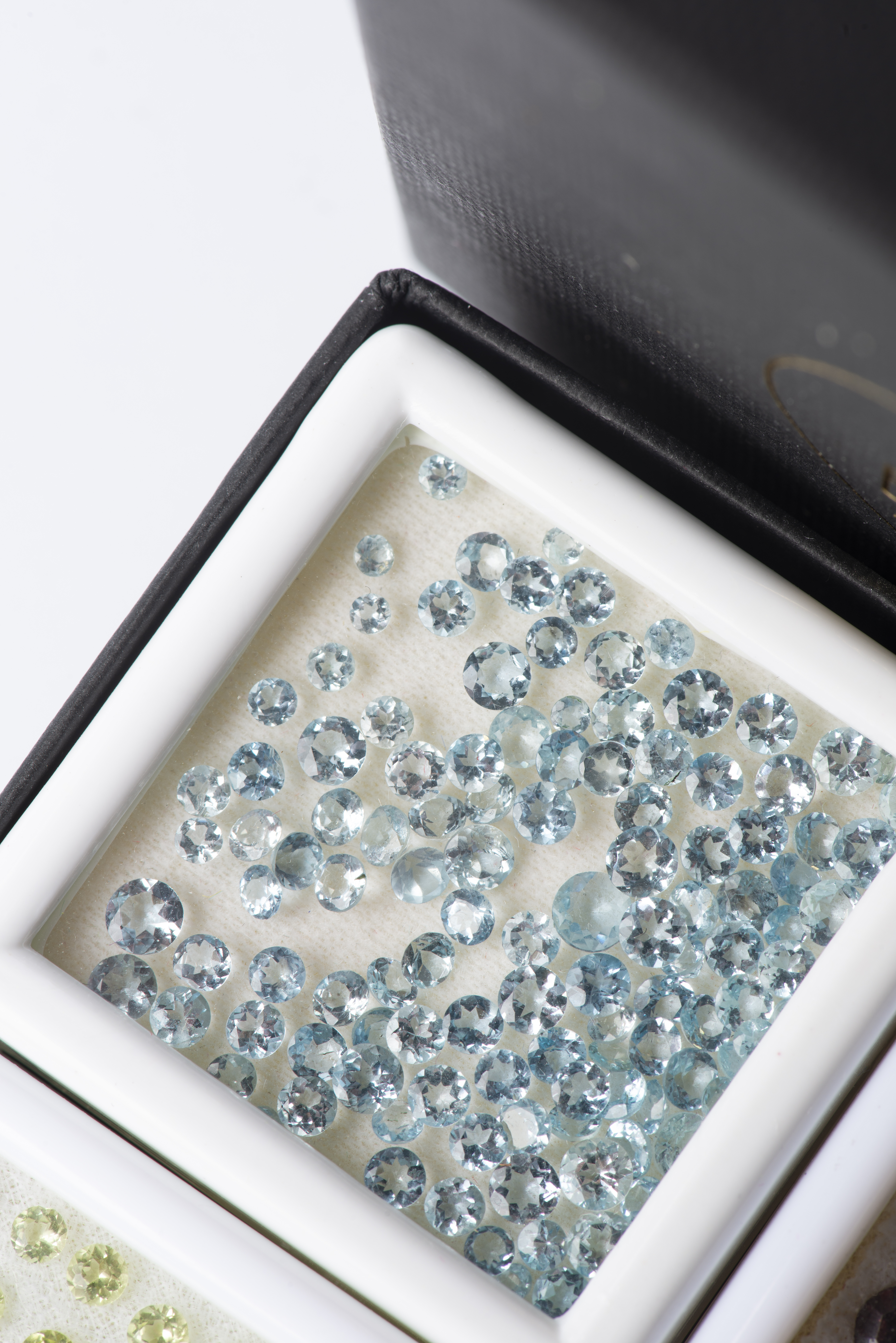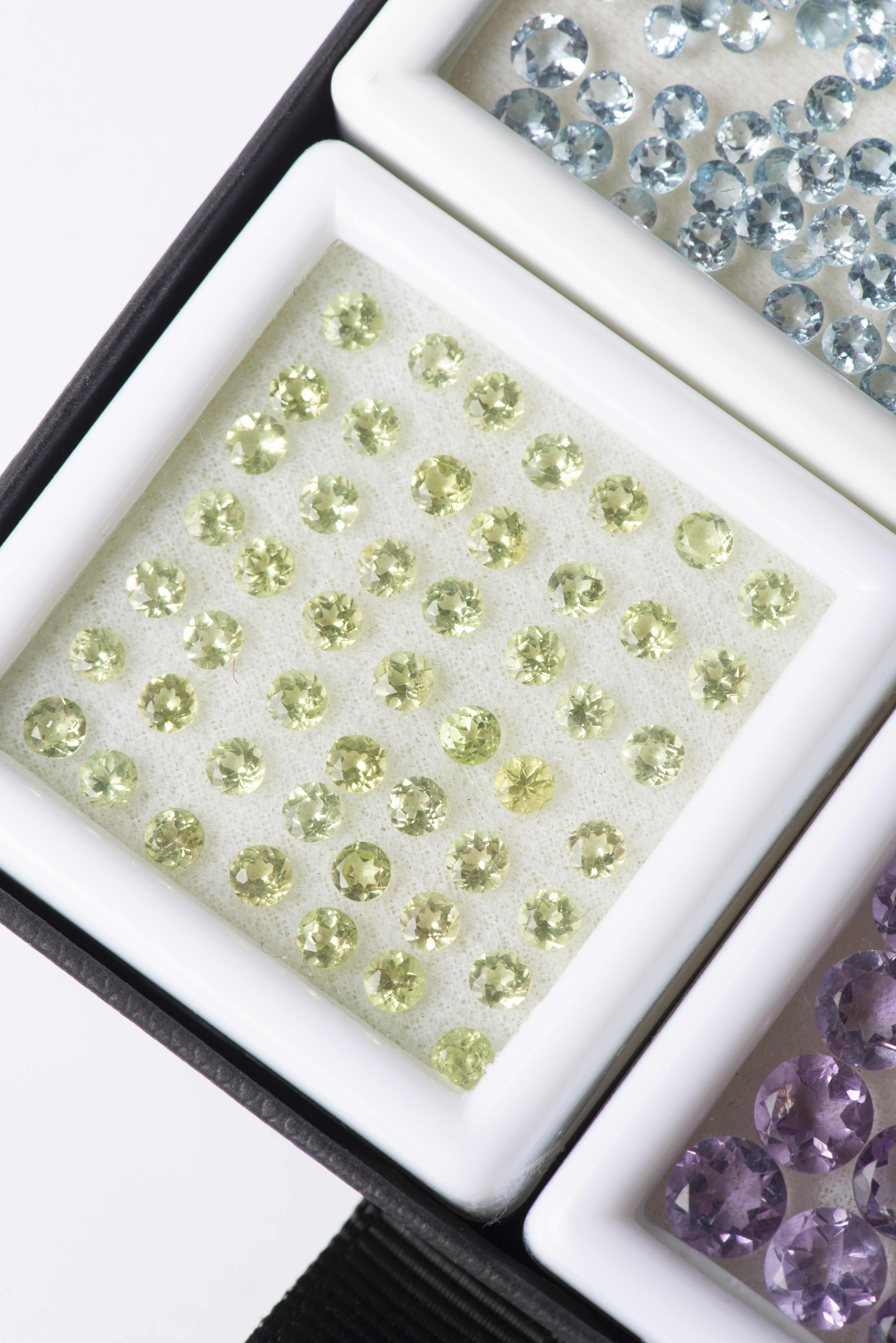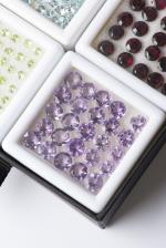 Ensemble de pierres non montées comprenant des améthystes, péridots, grenats et aigues-marines