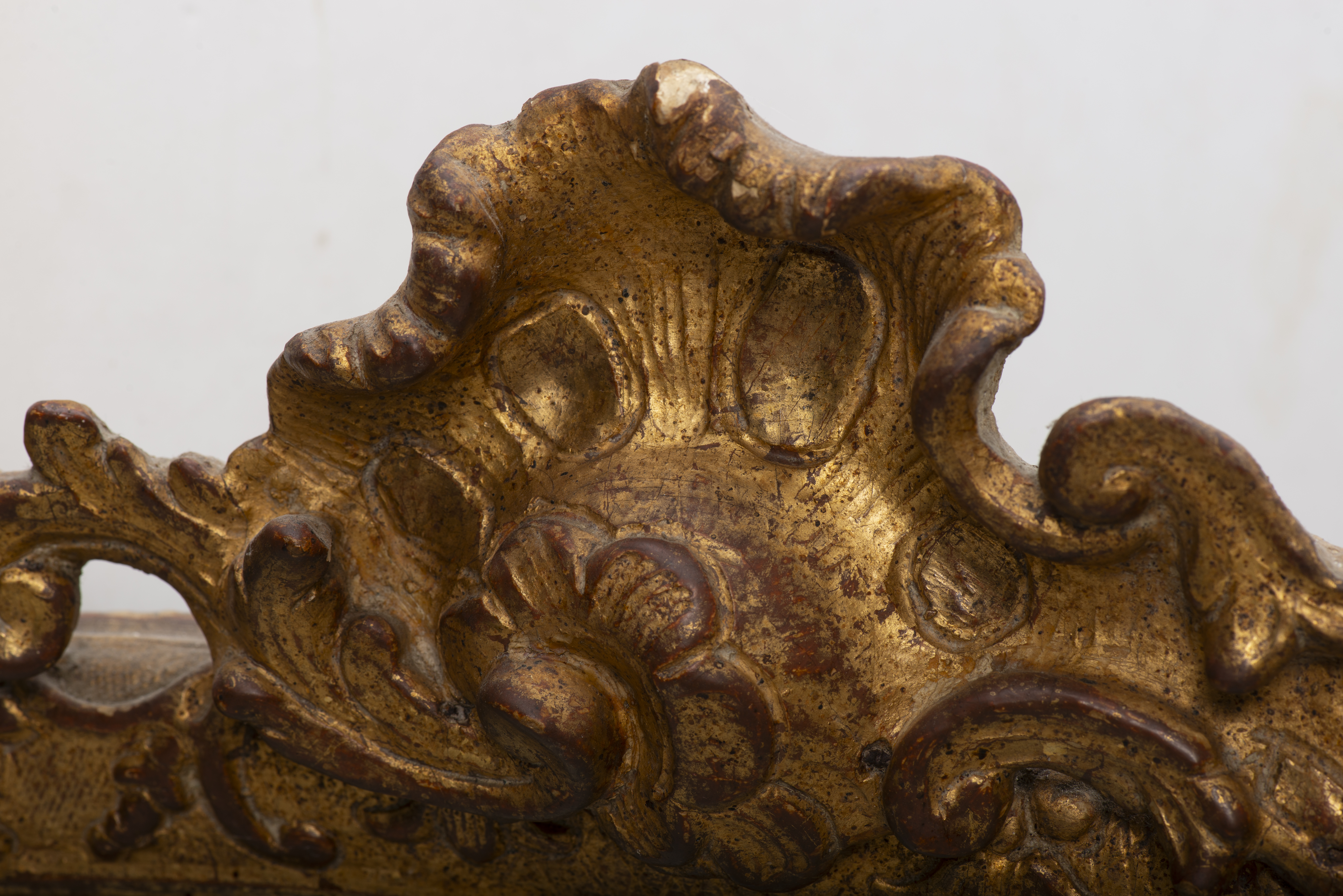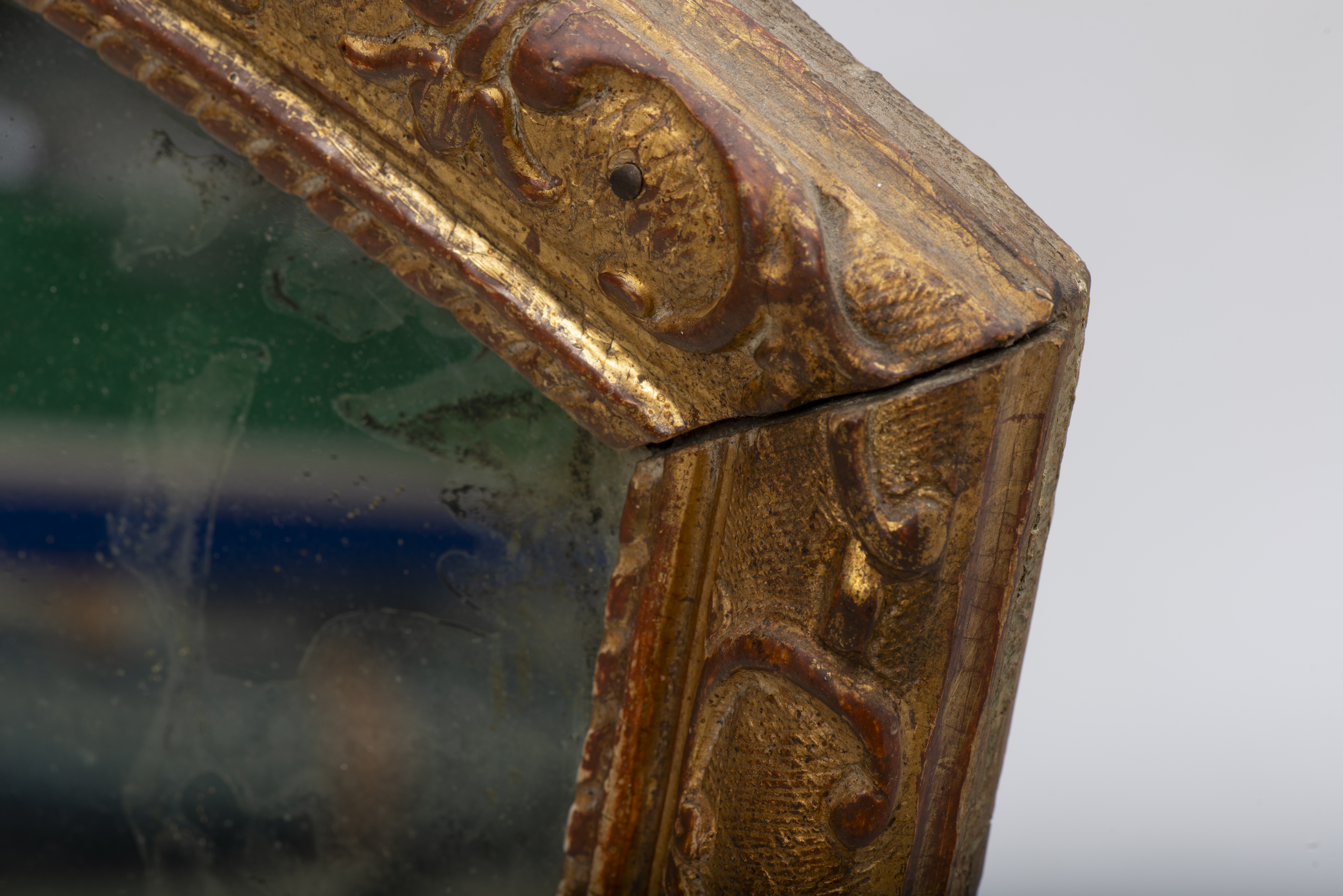 Travail XIXe - Miroir de style Rococo à cadre en bois sculpté et glace au mercure.