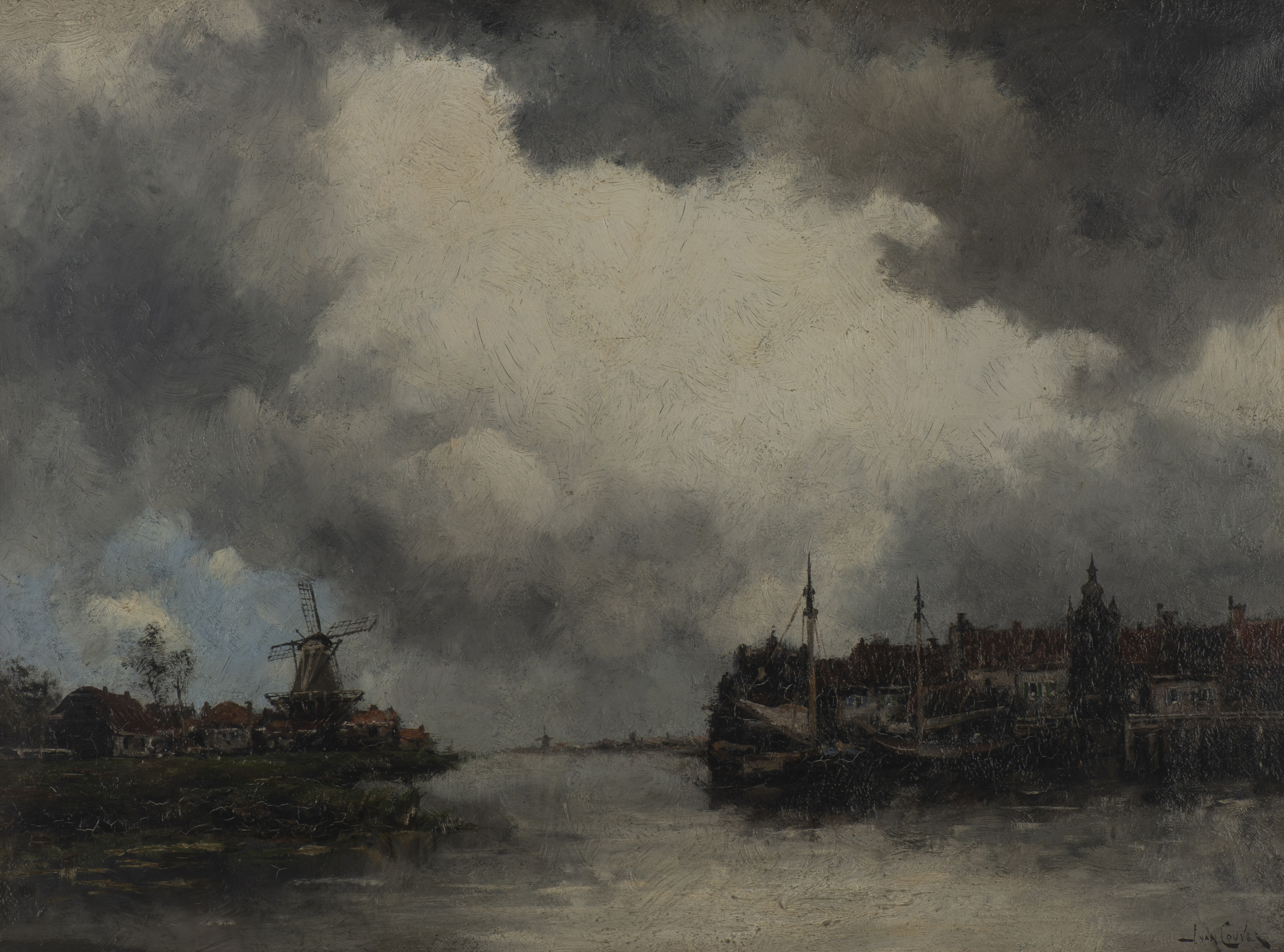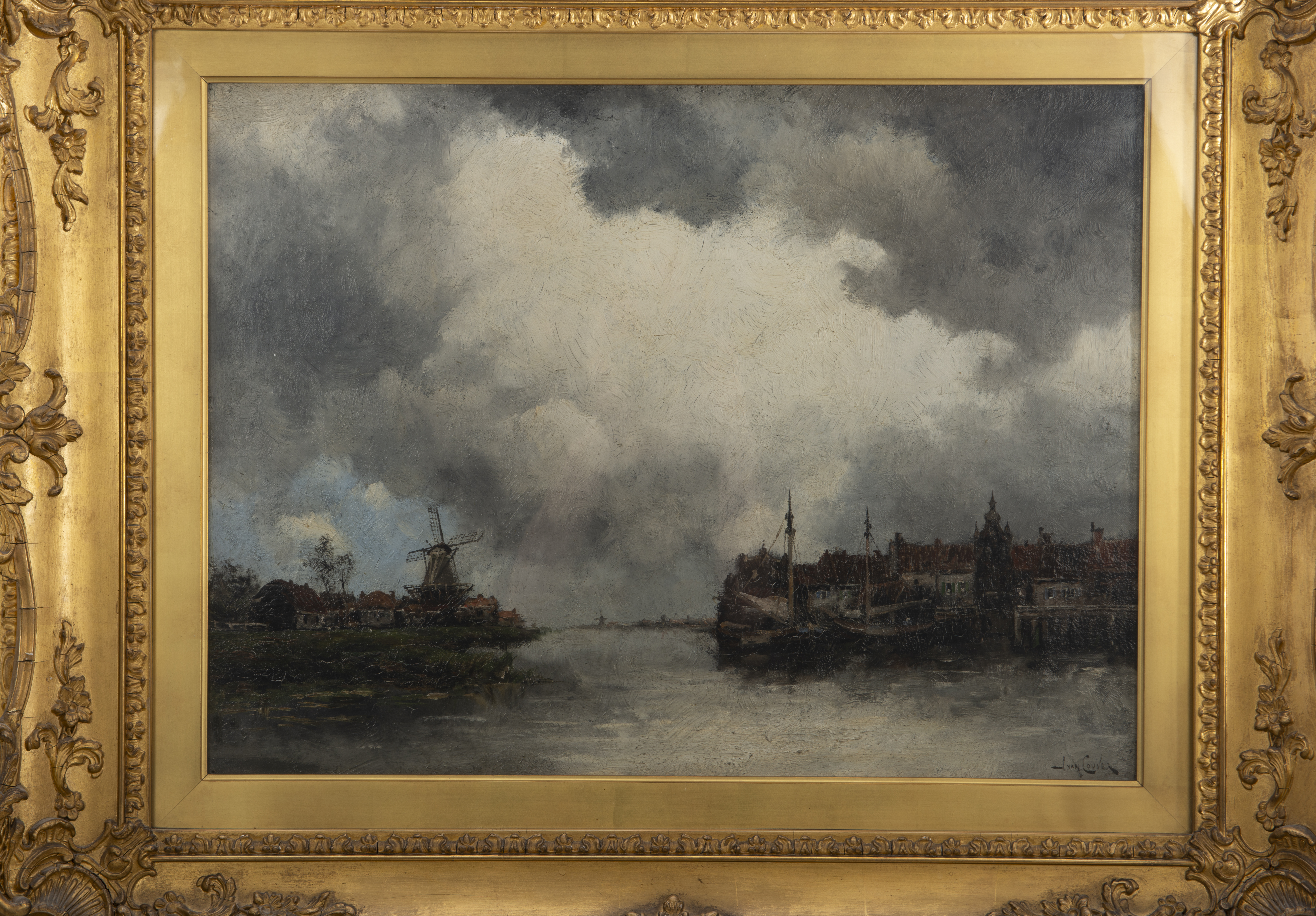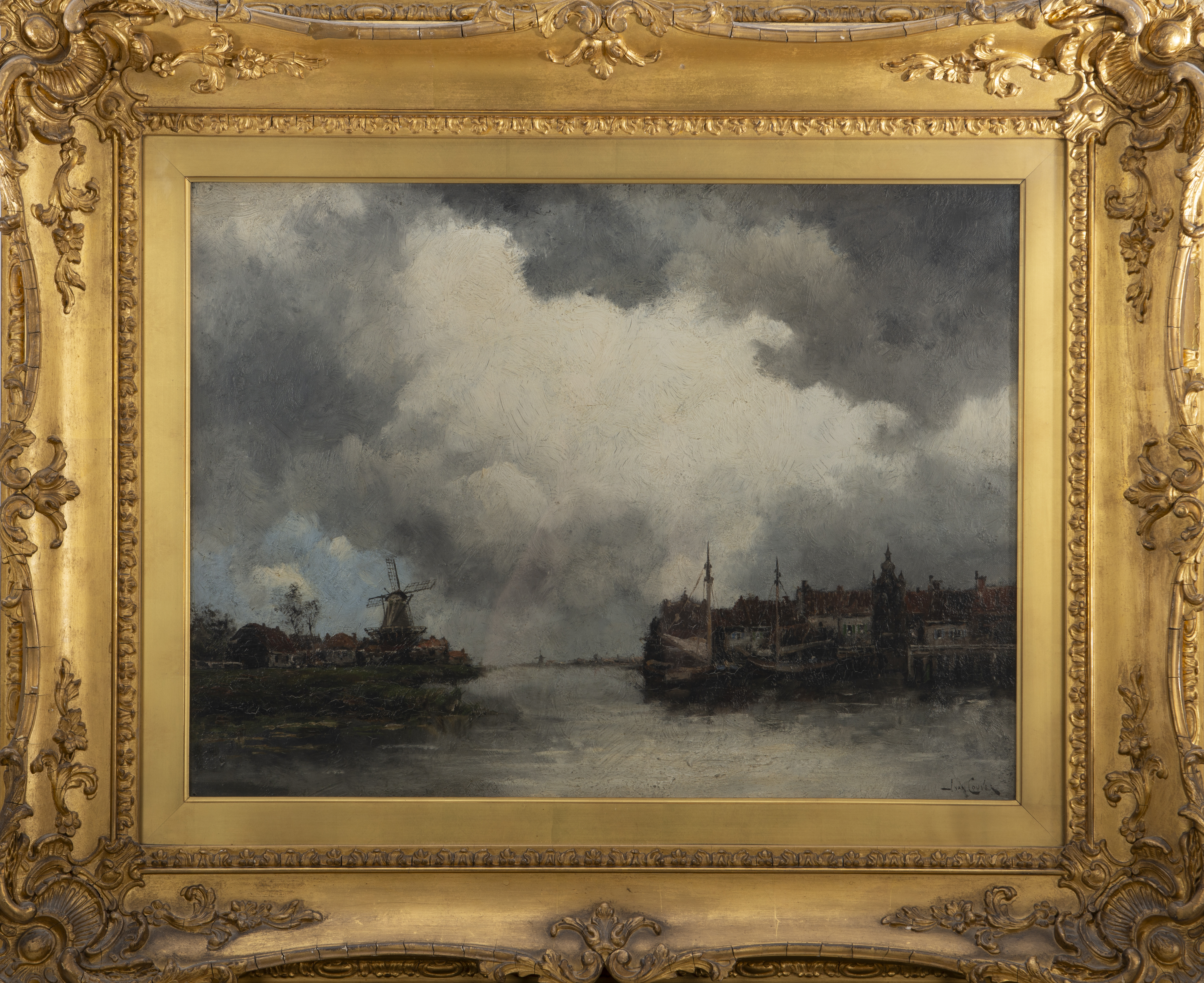 Ivan COUVER (XIX), 'Paysage fluvial du nord', huile