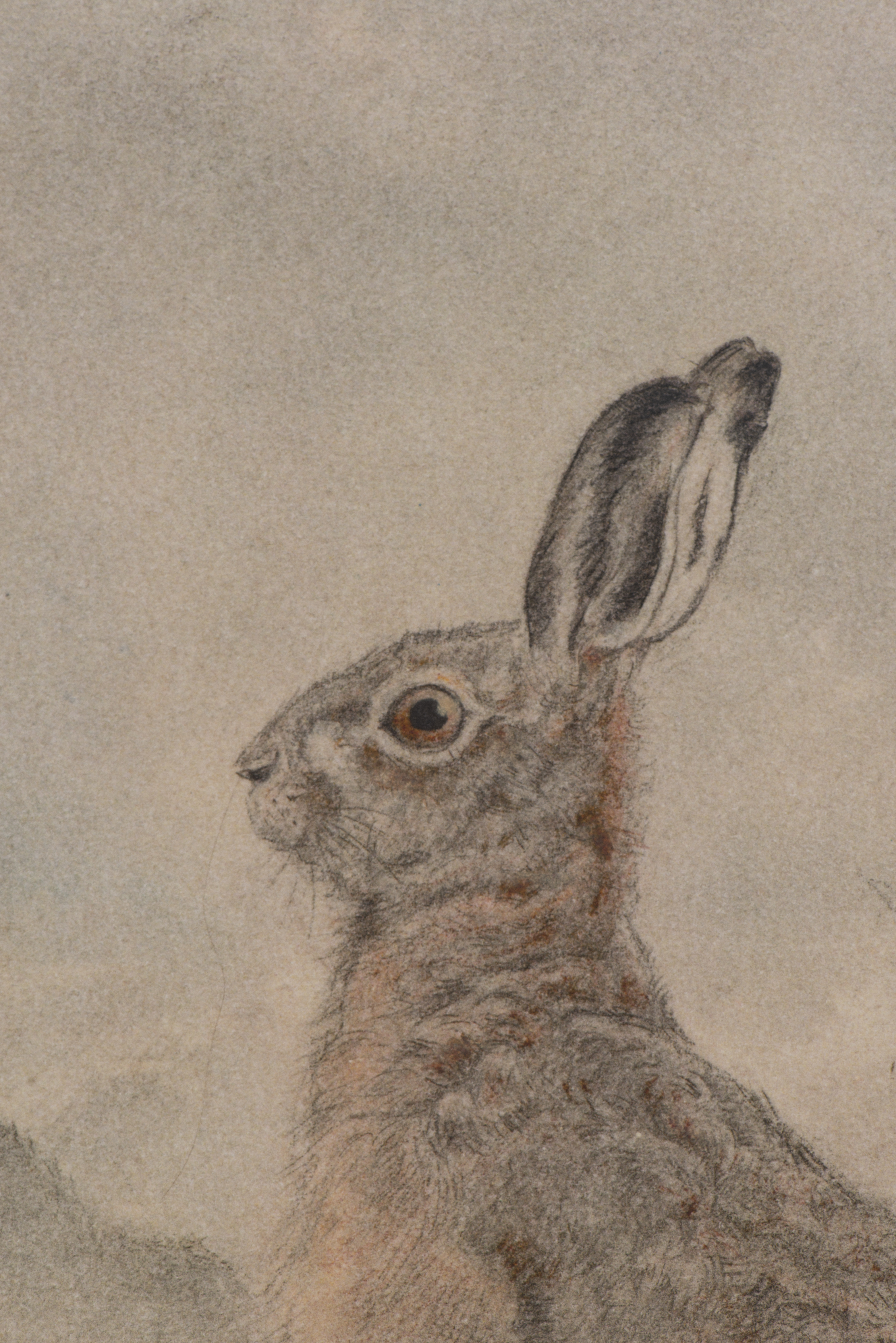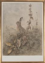 Xavier DE PORET (1894-1975), 'Lièvres dans l'herbe', lithographie