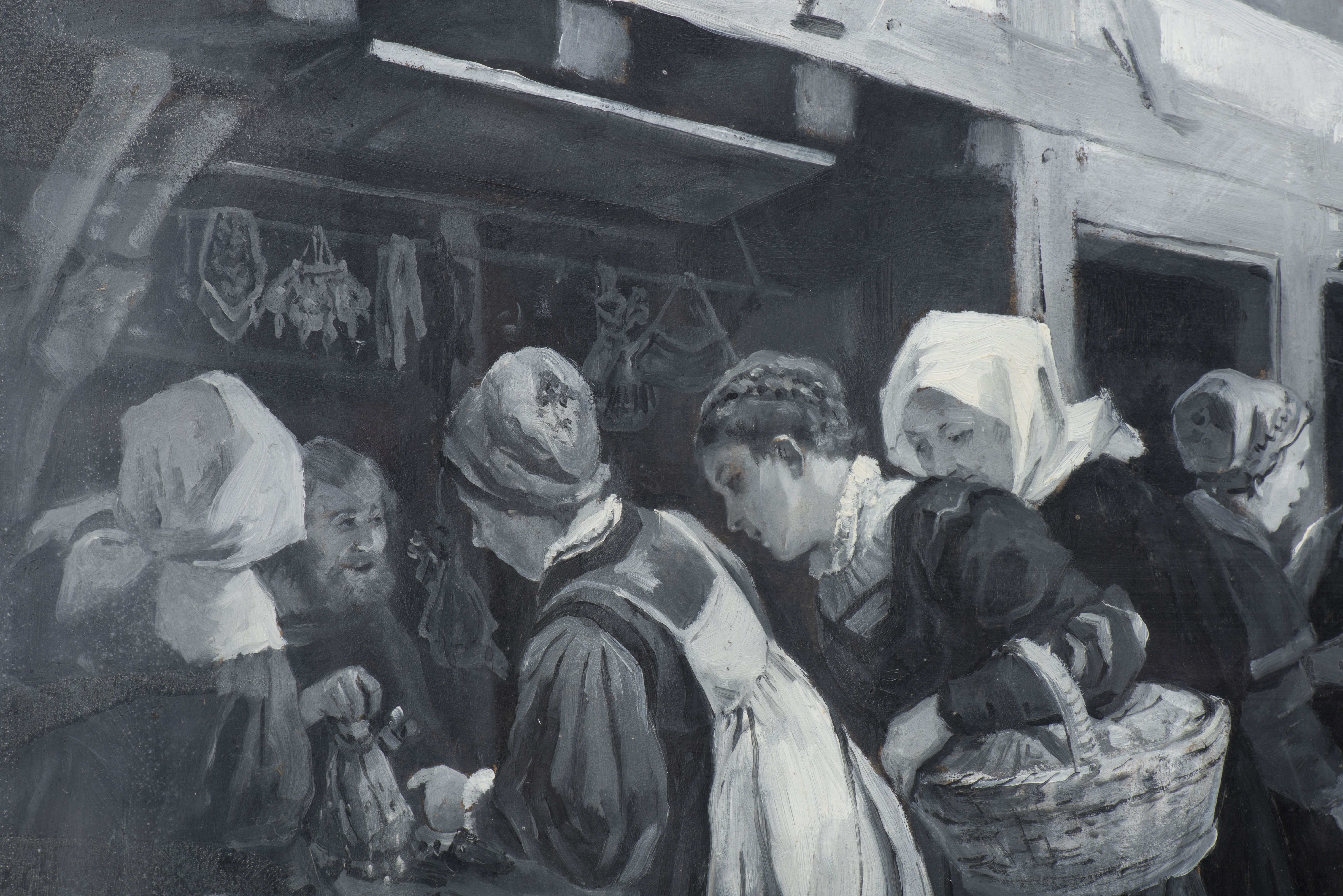 A. BACHMANS, Ecole allemande - "Scène de vie médiévale", huile
