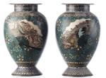 JAPON - Paire de vases en émaux champlevés, Vers 1900