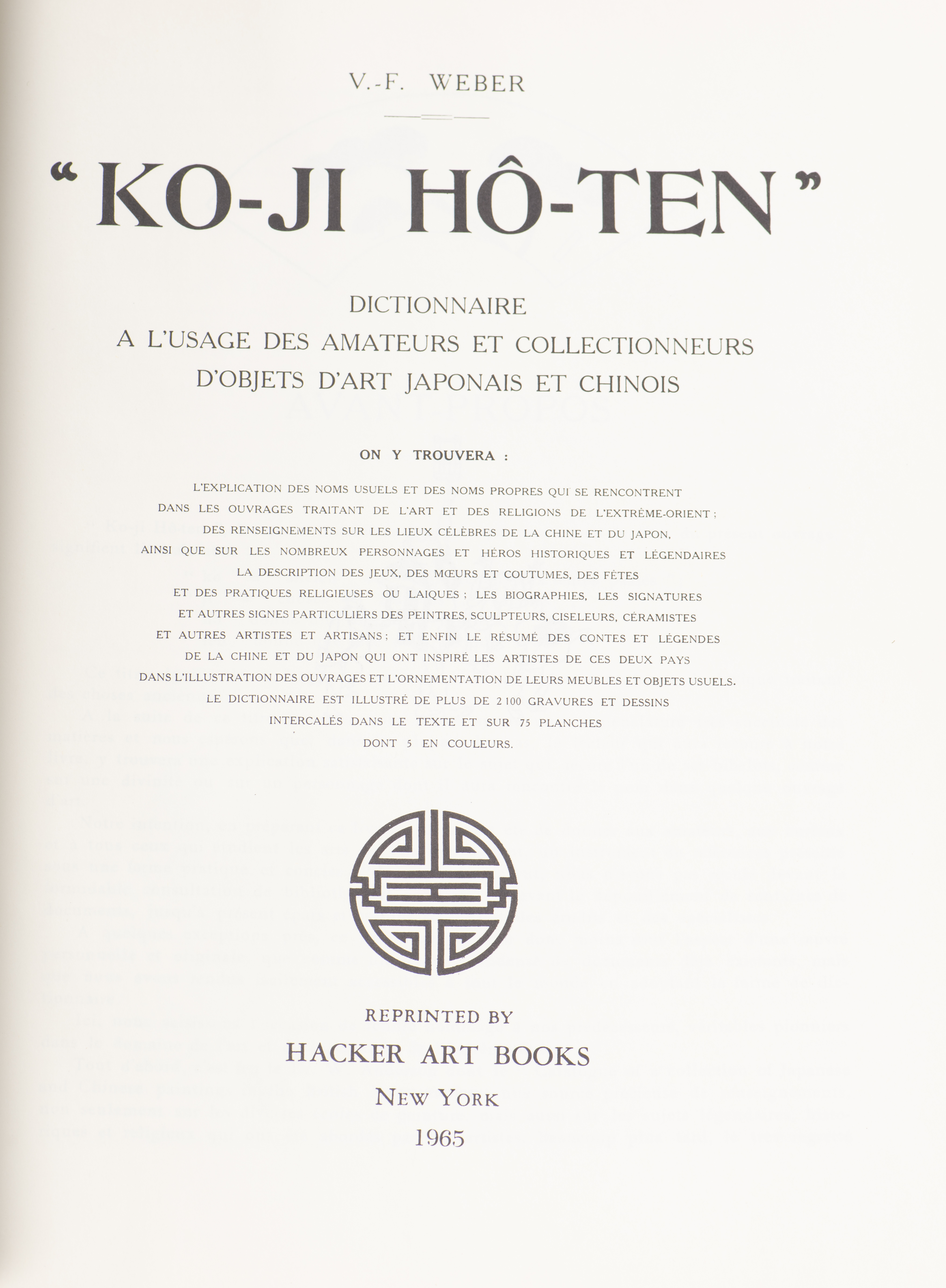 V.F WEBER - "Ensemble des deux volumes du Ko-Ji Ho-Ten: Dictionnaire à L'Usage Des Amateurs Et Collectionneurs D'Objets D'Art Japonais Et Chinois"