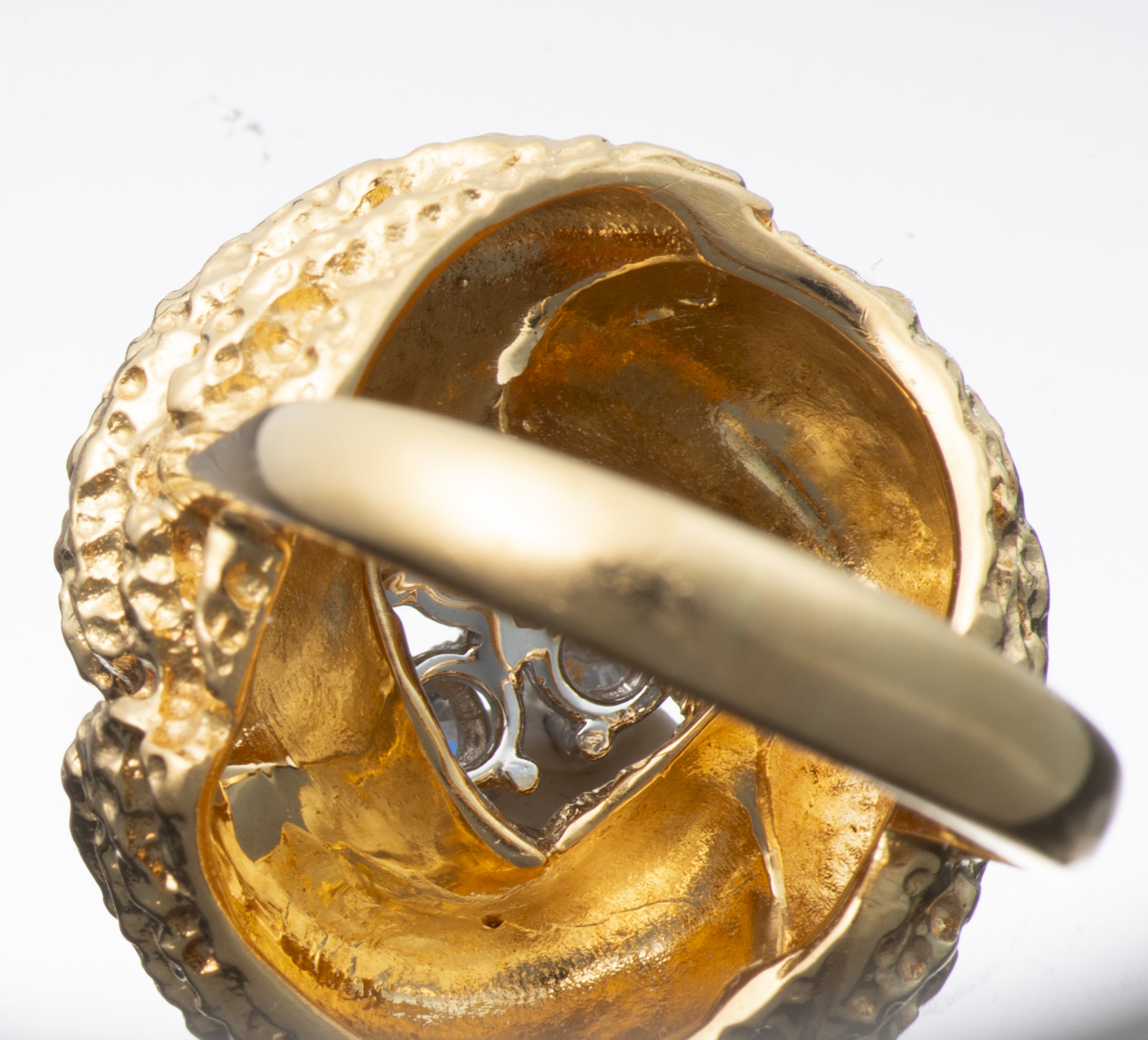 Bague en or jaune en forme de turban ornée au centre de diamants