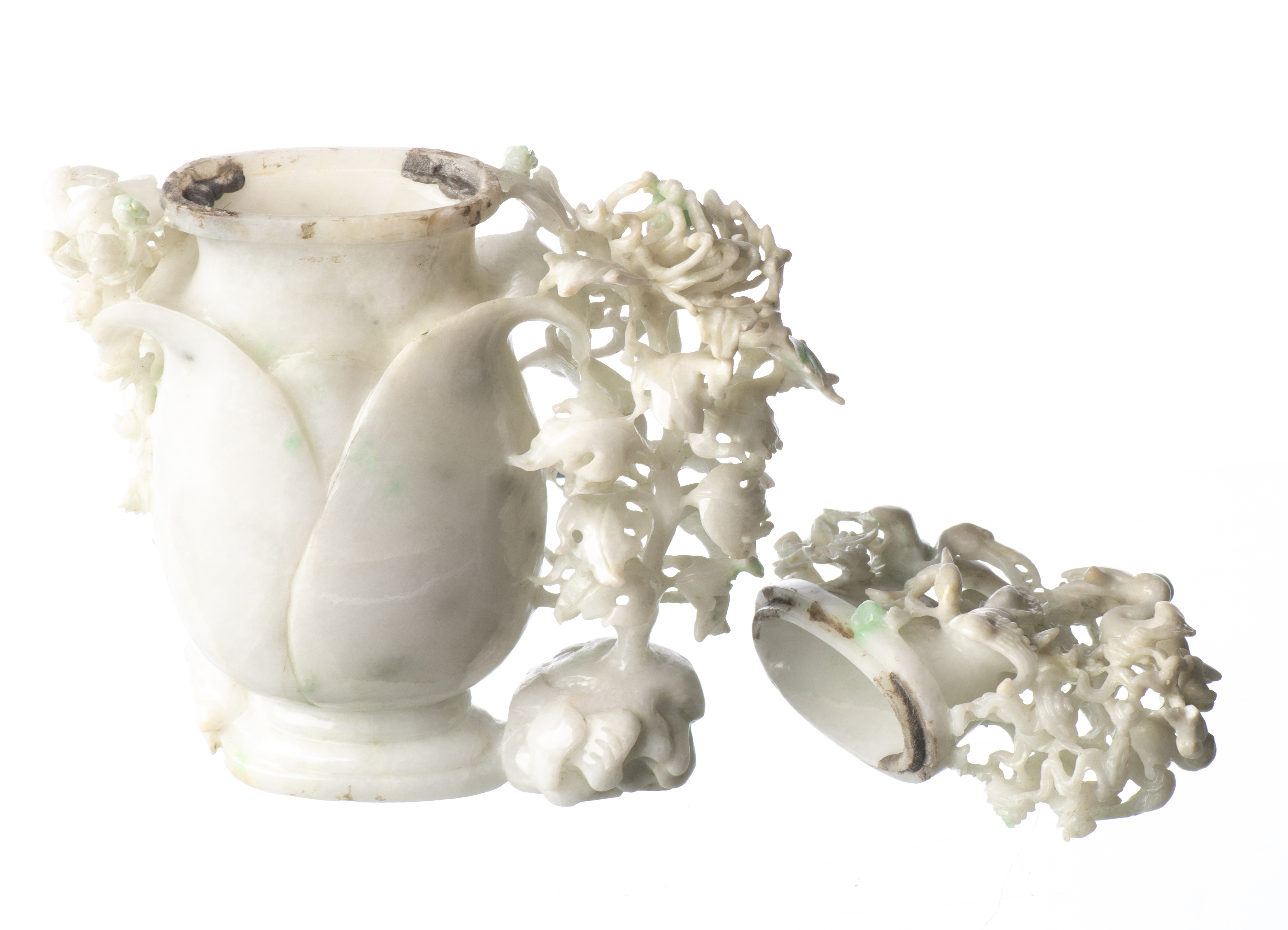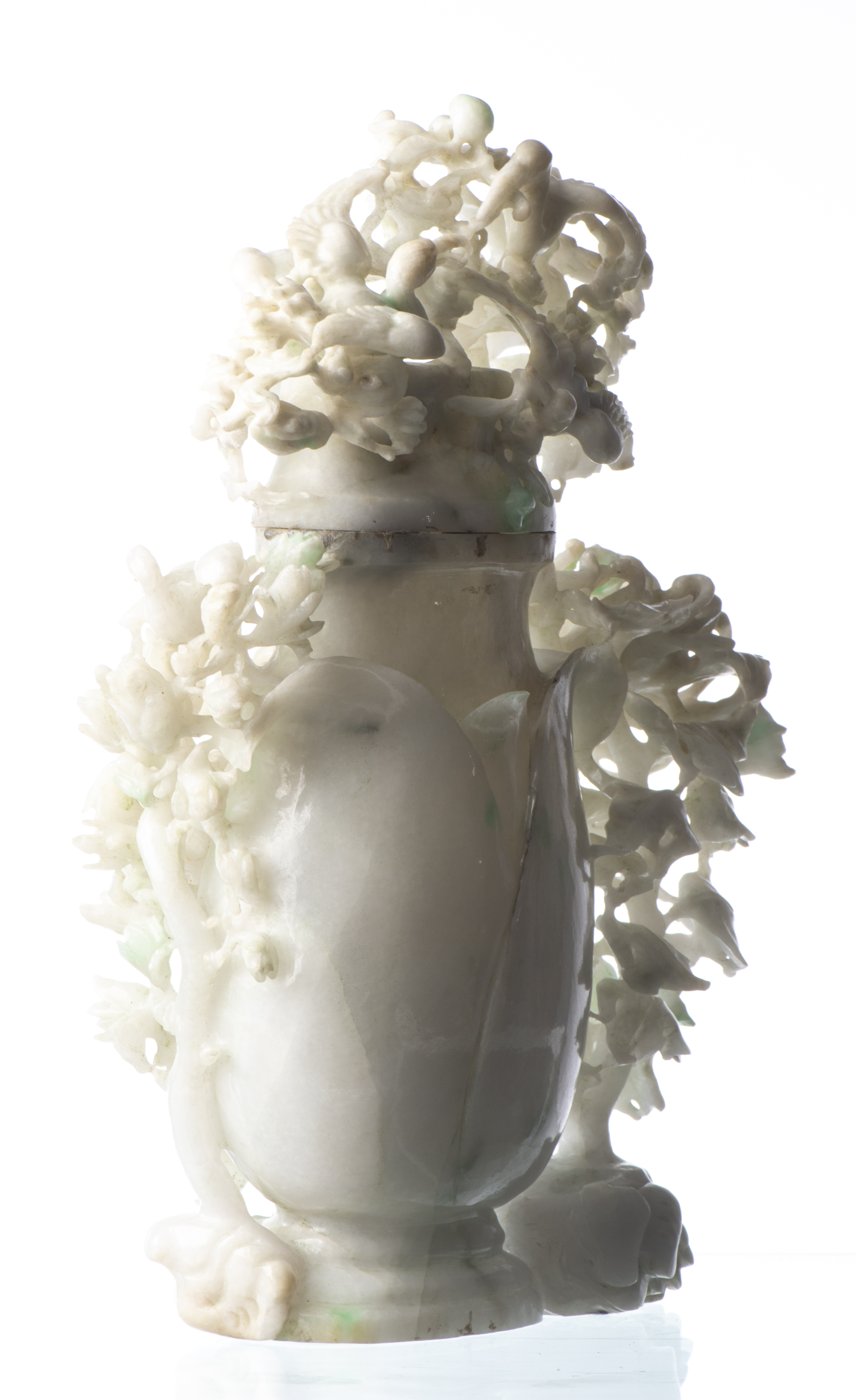 CHINE - Vase en Jadeite blanche et vert émeraude