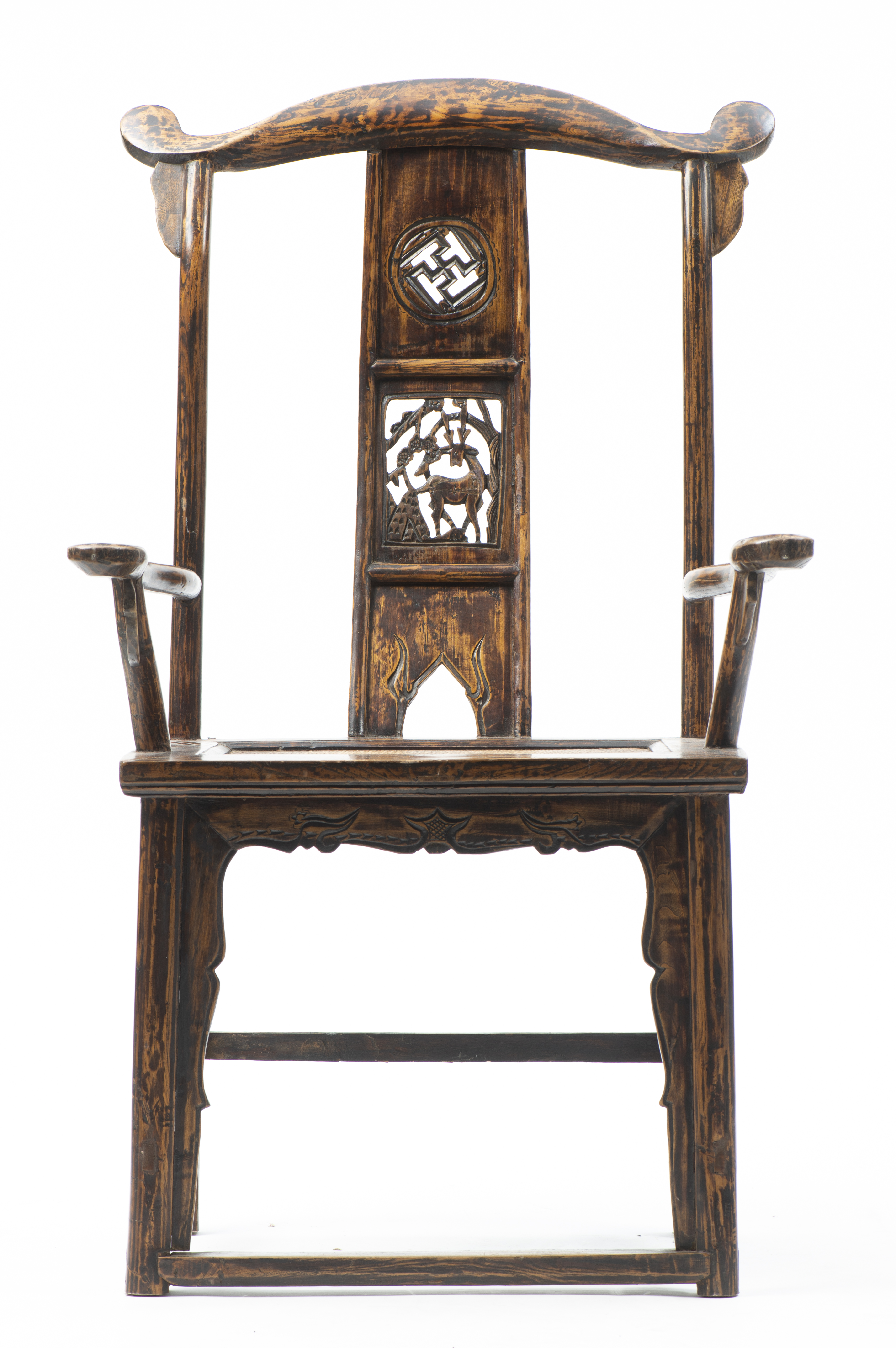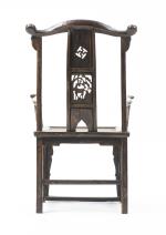 CHINE - Fauteuil en bois de Ju à dossier en forme de bonnet de lettré