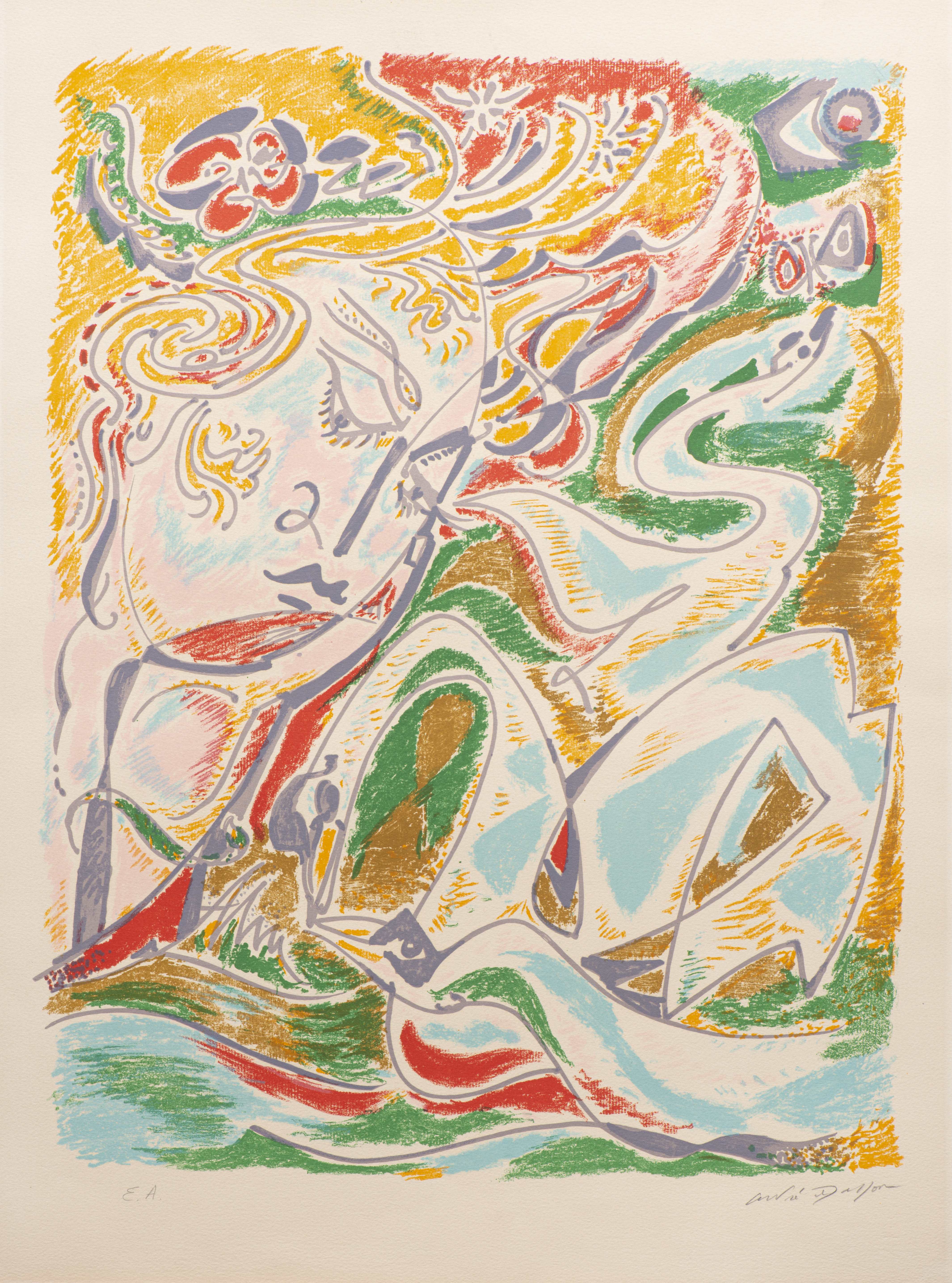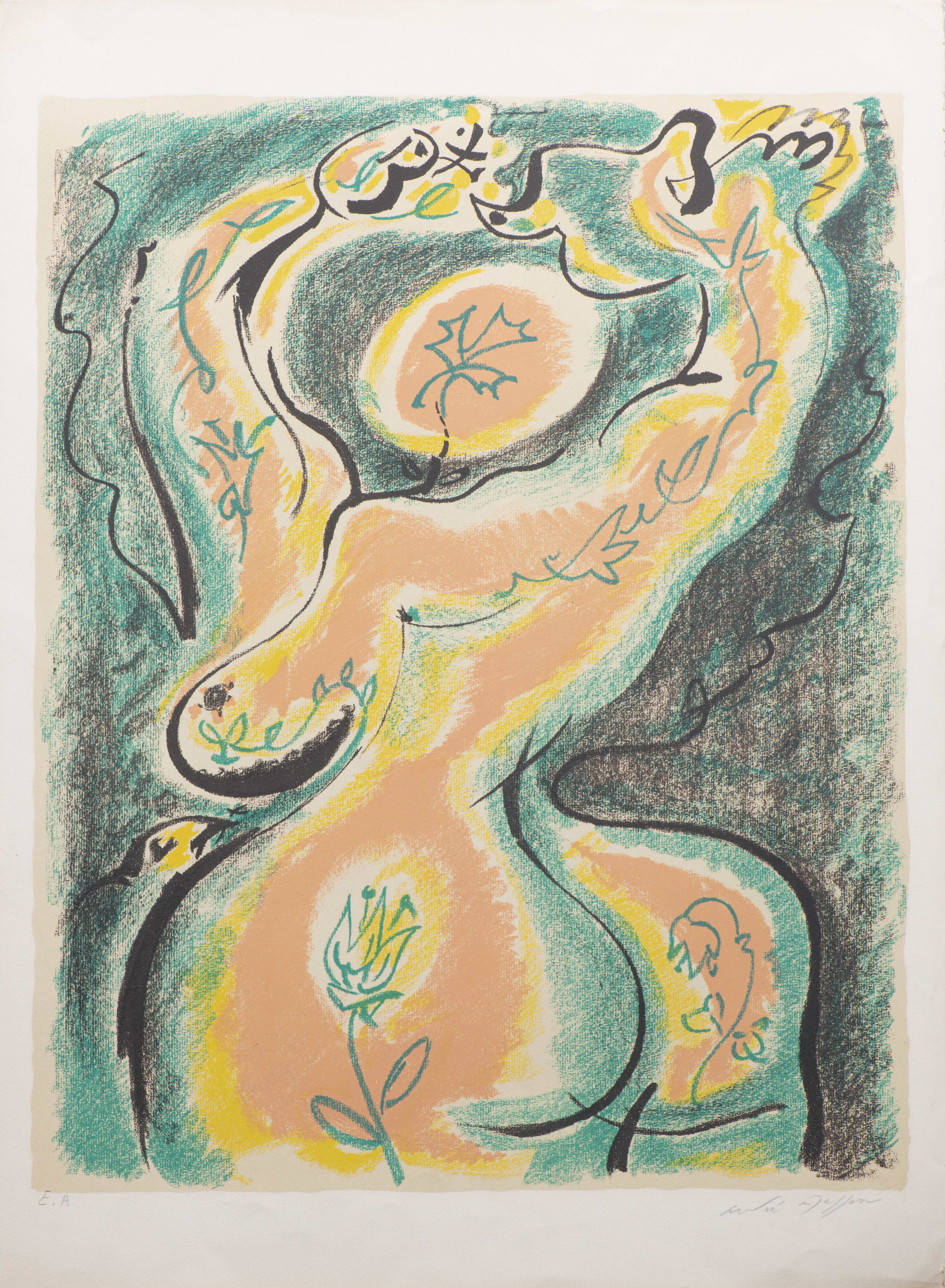 André MASSON (1896-1987), "Femme aux cygnes", lithographie en couleurs, annoté épreuve d'artiste et signé au crayon en bas à droite