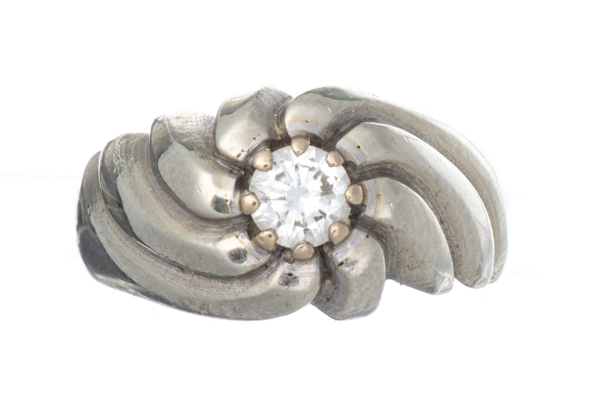 Bague en or gris .585 sertie au centre d'un diamant de env. 0.5 ct.