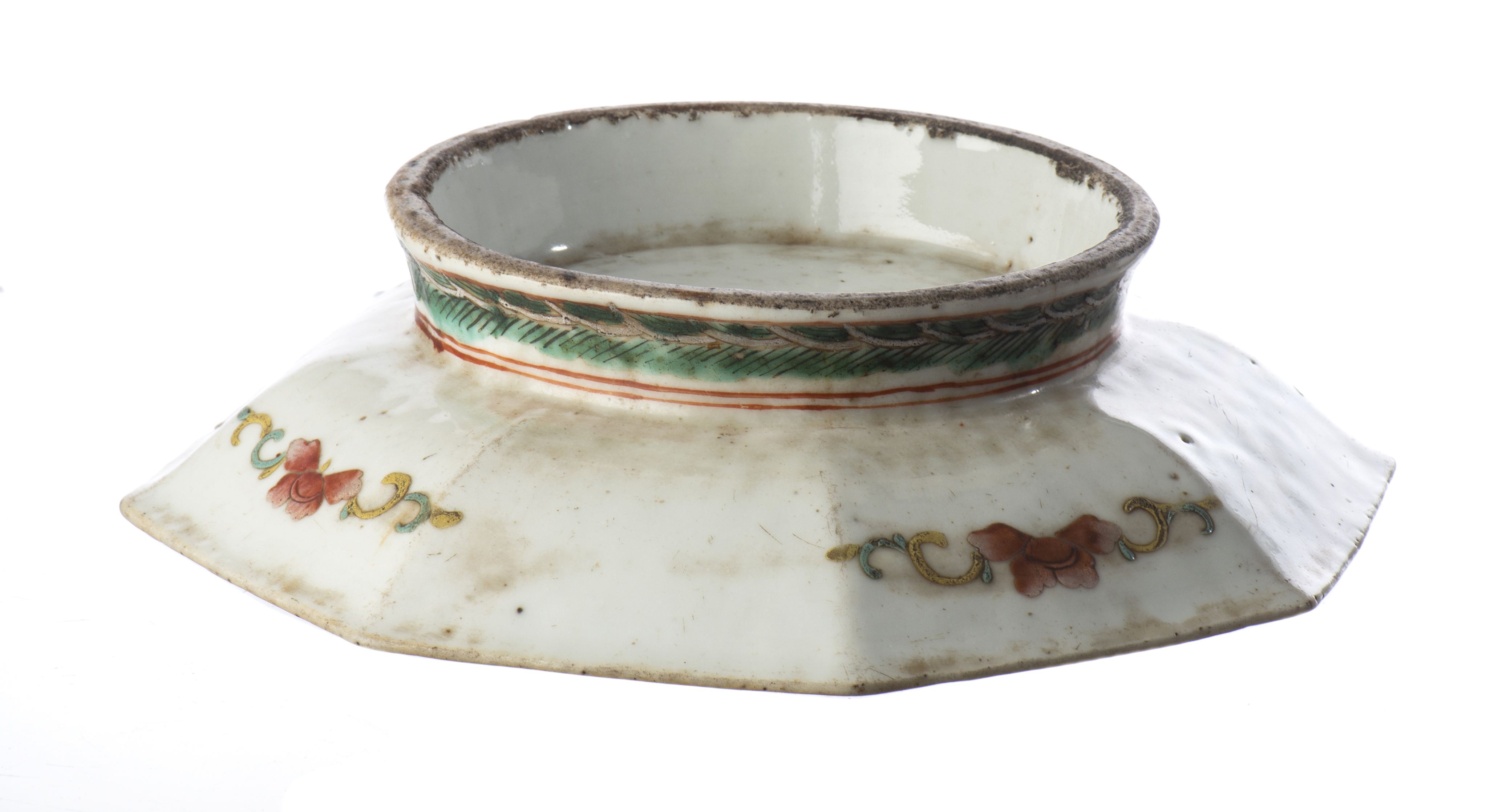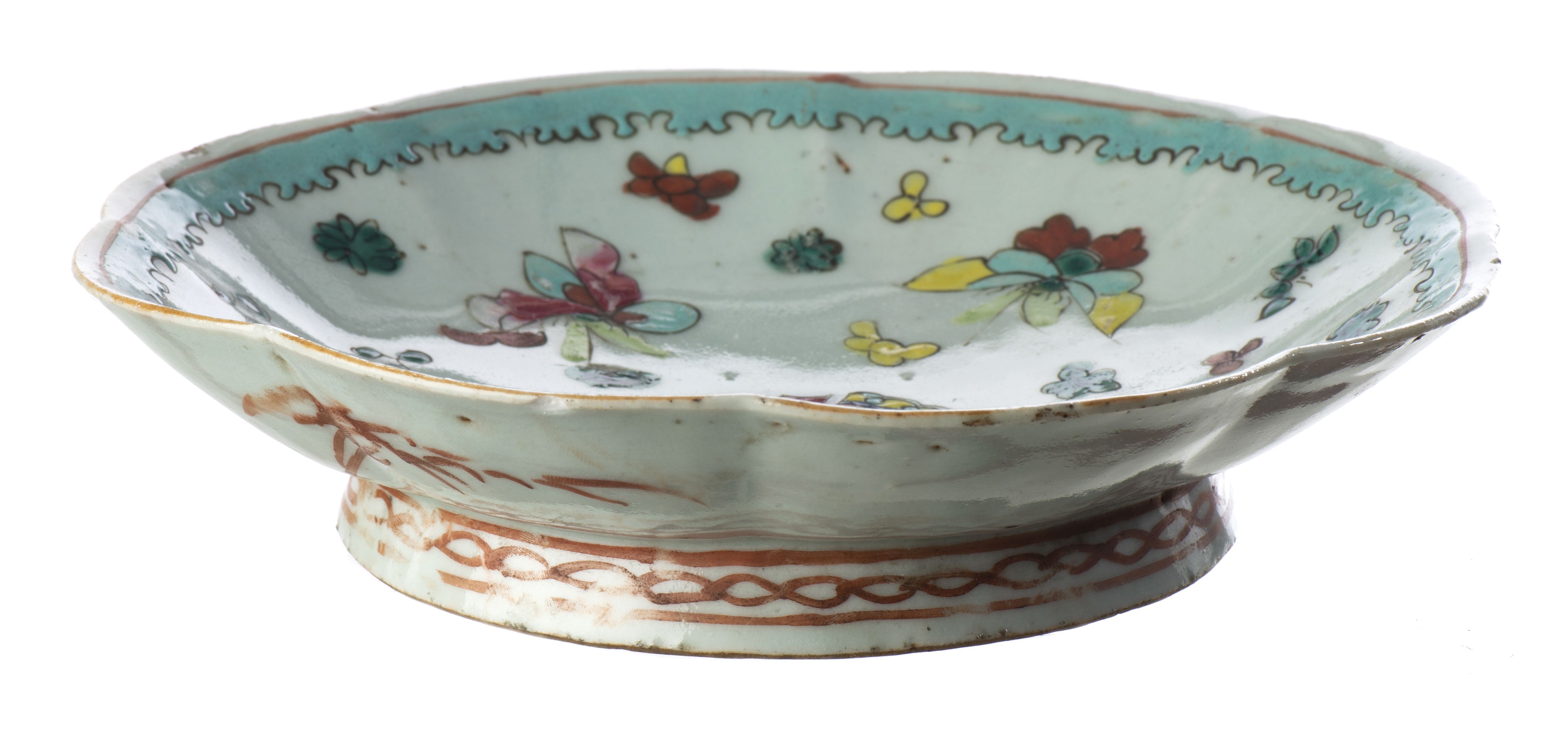 CHINE, 7 coupes en porcelaine à décor en famille rose de fleurs et papillons à bord polylobés