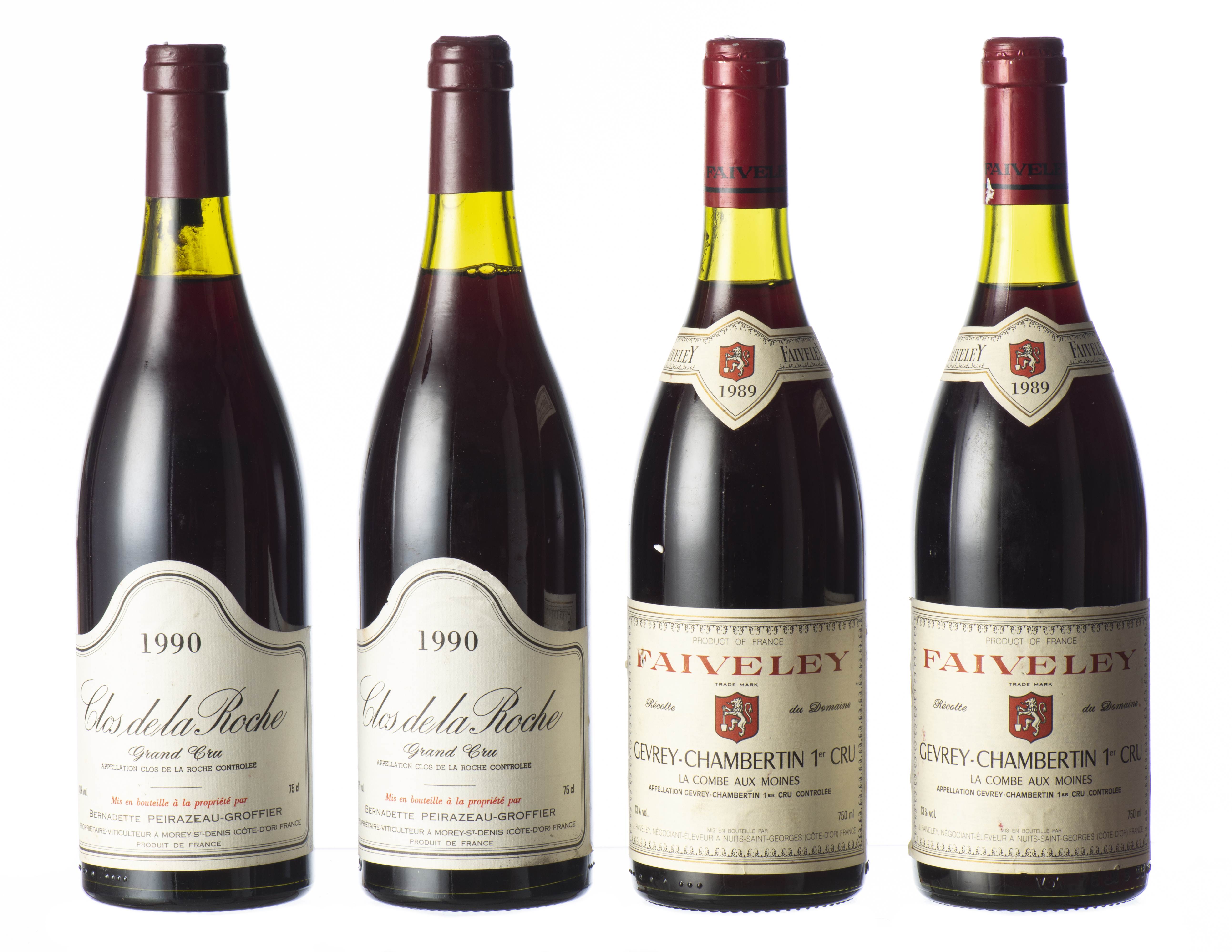 Clos de la Roche Grand Cru Peirazeau-Groffier 1990, 2 bt & GEVREY-CHAMBERTIN "La Combe aux Moines 1° cru", Faiveley 1989 2 bt. (F)