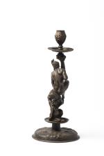 Corneille Van Clève (1645-1732), d'après– Paire de flambeaux en bronze à patine brune